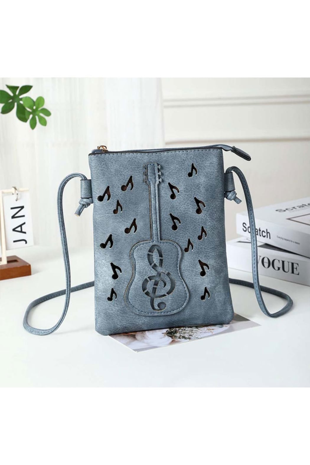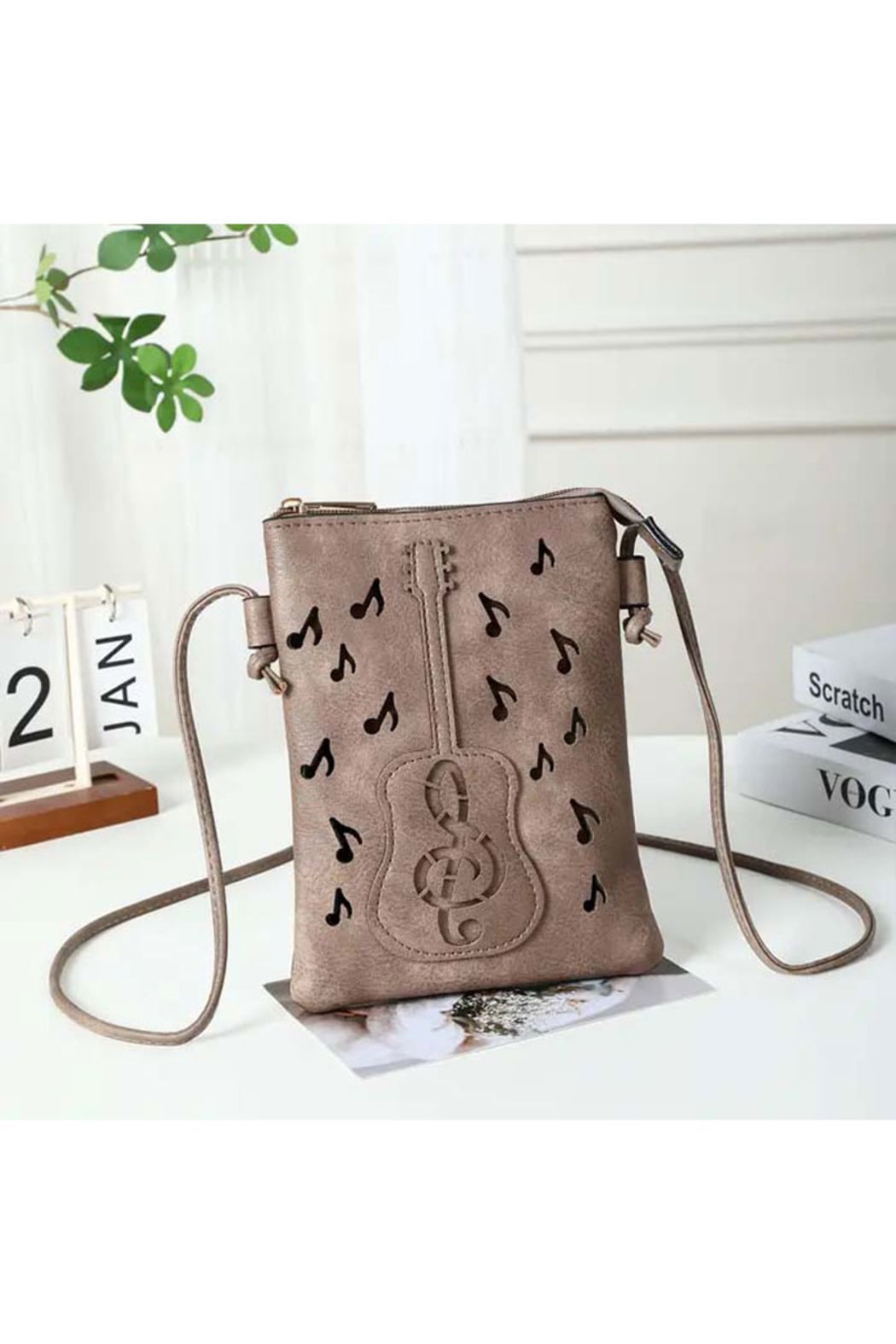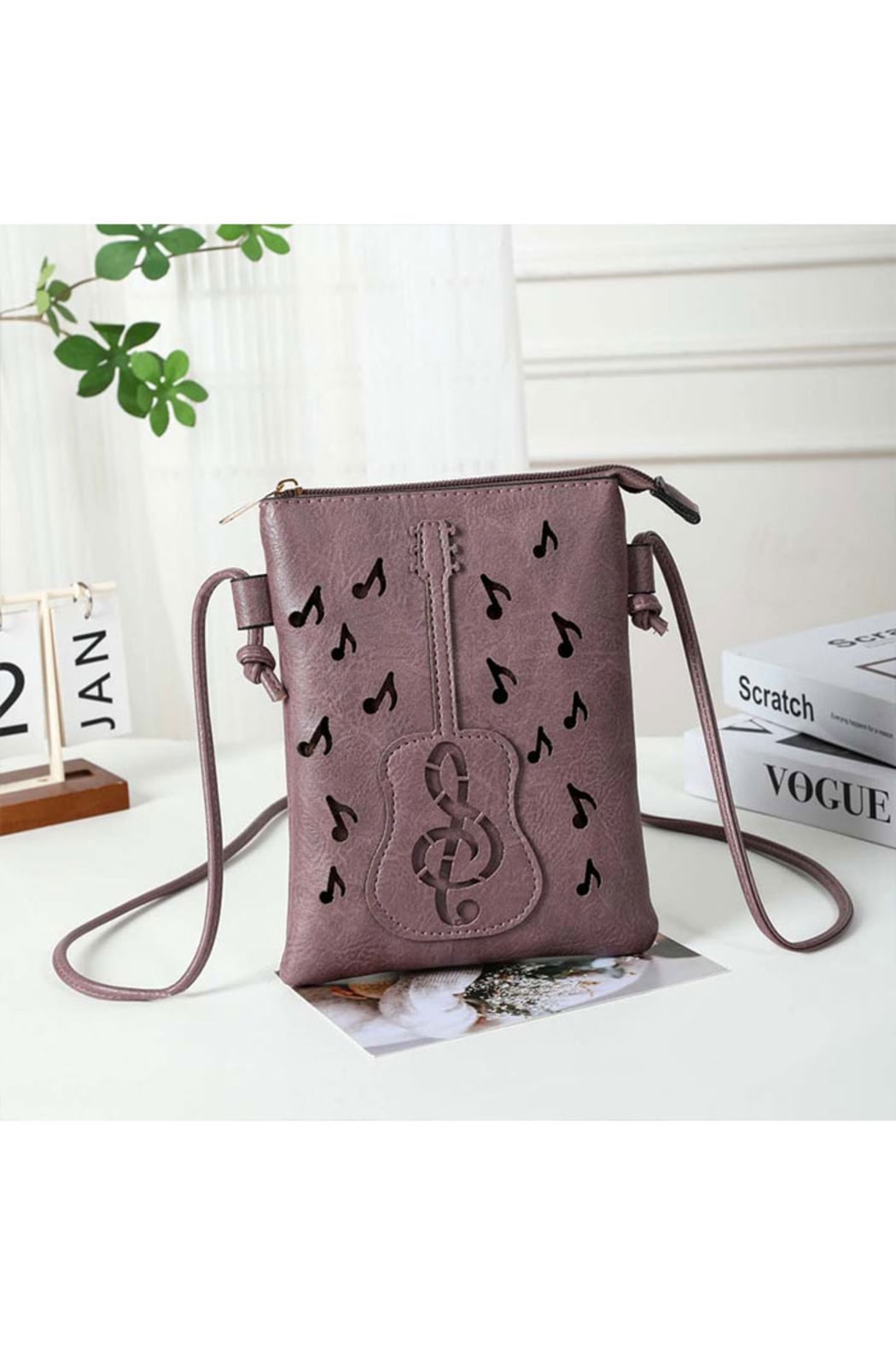 Strike a stylish chord with the Guitar Laser Cut Crossbody Cellphone Bag — a playful yet sophisticated piece that blends music-inspired artistry with modern function. Designed in soft faux leather, it features an intricate laser-cut guitar motif surrounded by floating musical notes, capturing the spirit of creativity and individuality. Perfect for concerts, travel, or everyday errands, this lightweight crossbody offers hands-free ease with a boho-chic twist.