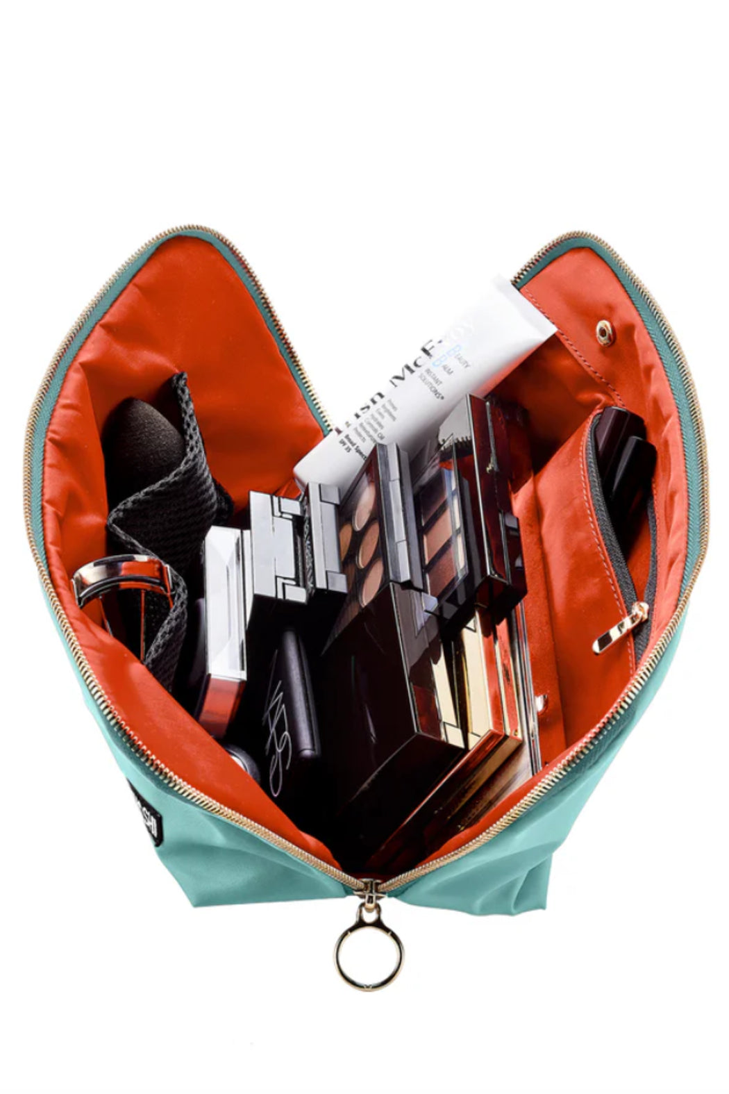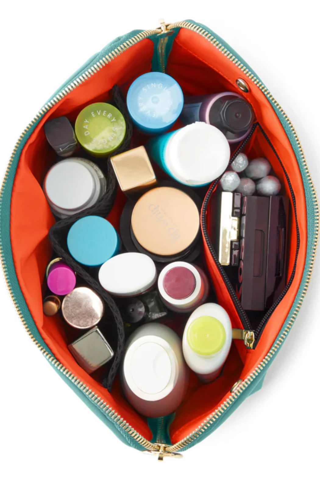 KUSSHI Signature Makeup Bag (medium) Sea Green with Bright Orange Interior