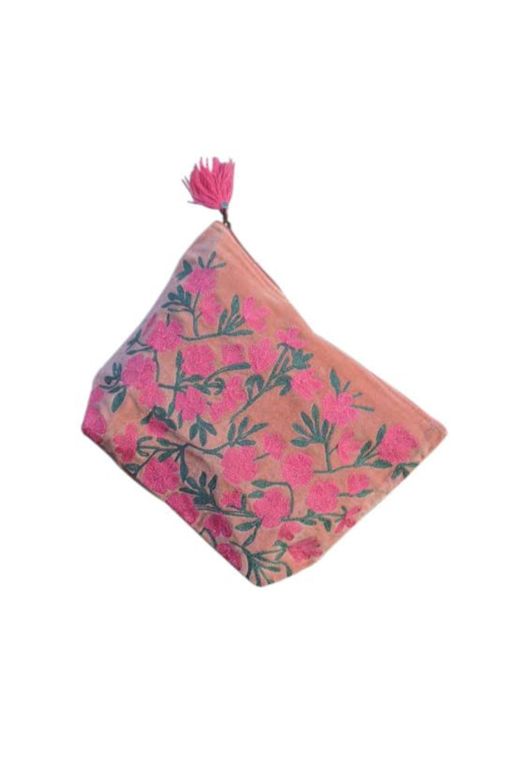 Large Embroidered Coral Flowers Pouch