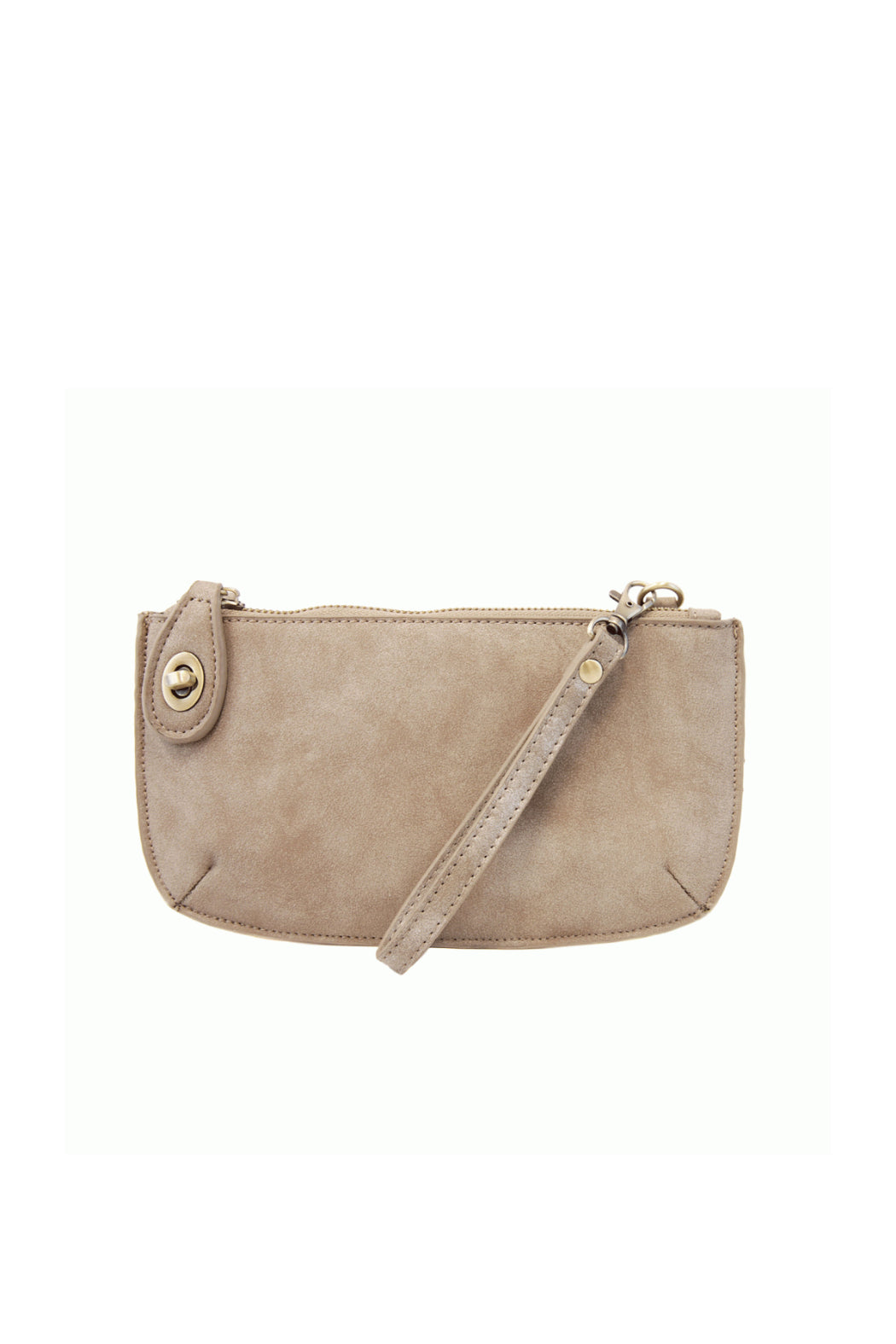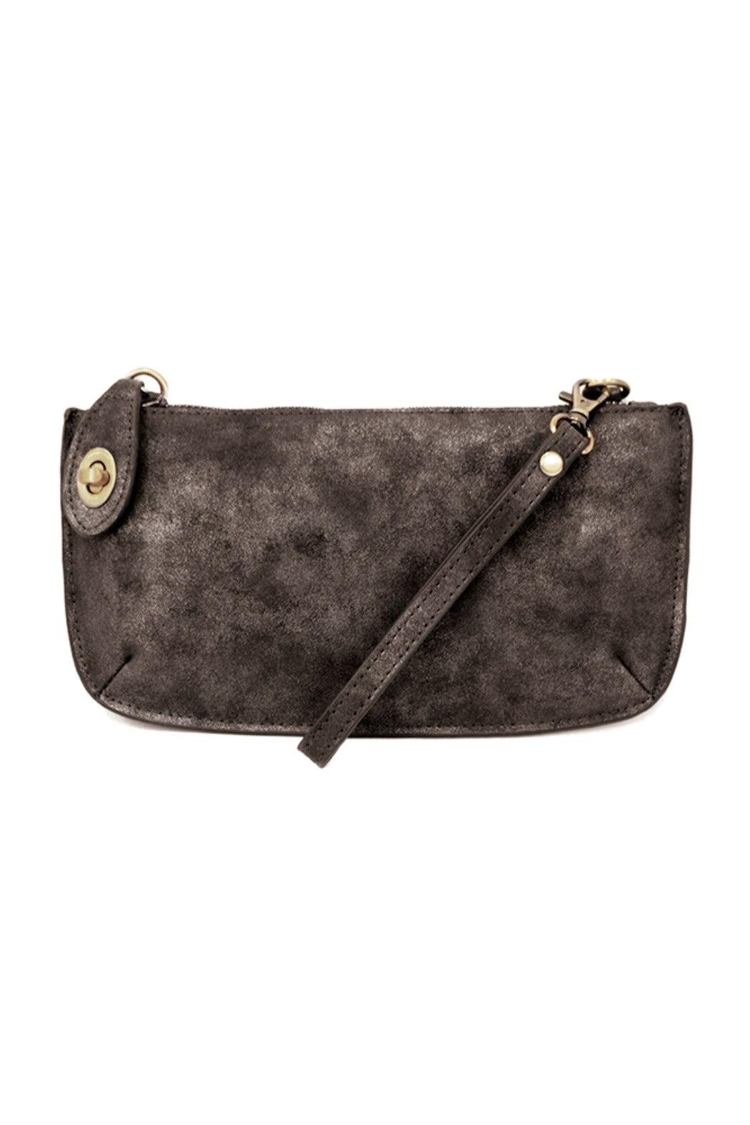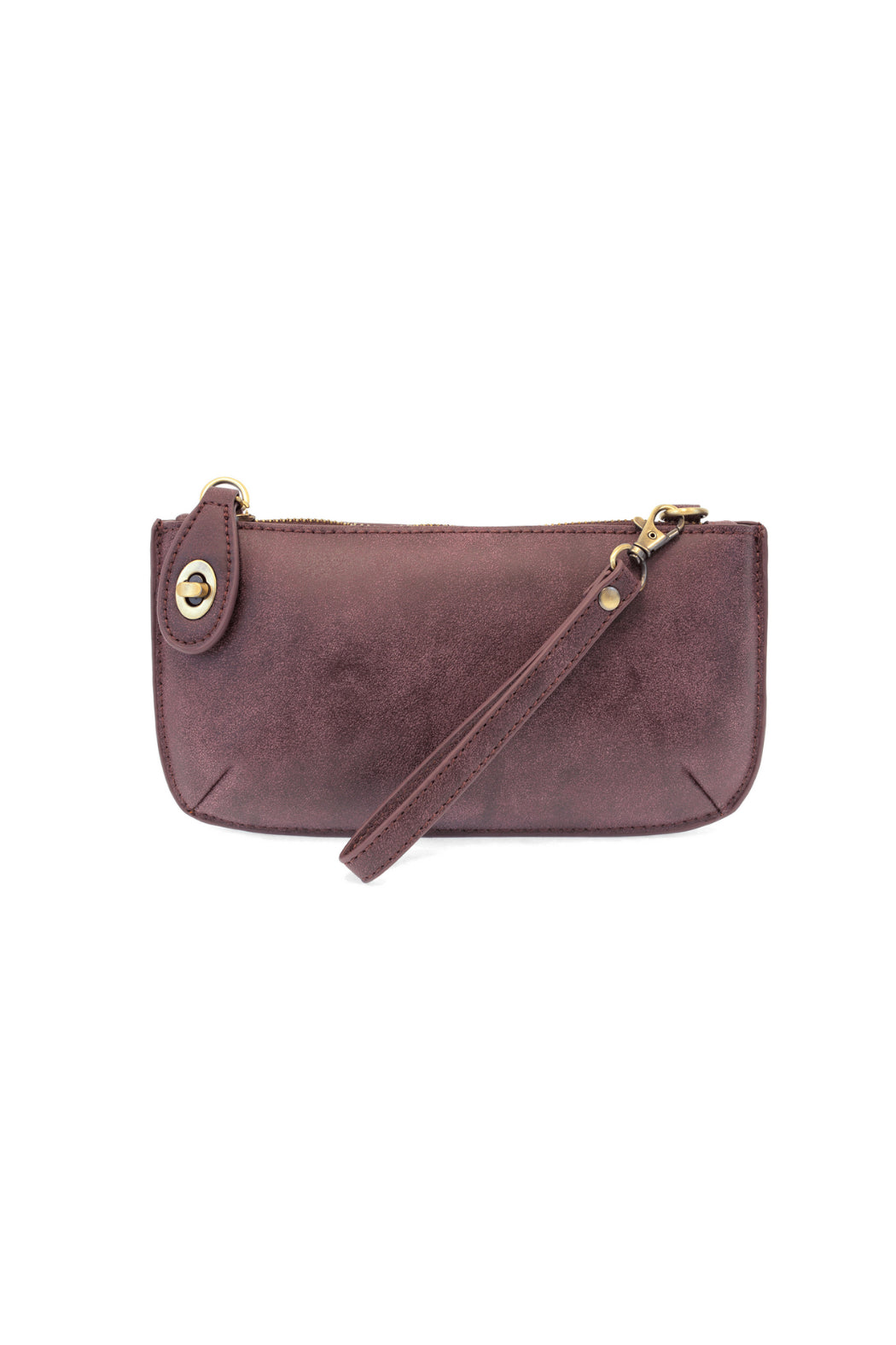 The Lux Crossbody Wristlet has a brushed finish, meaning this vegan clutch looks as good as you’ll feel wearing it. Plus, removable straps let you wear it as a wallet, wristlet, or crossbody clutch. 5" high, 9.5? wide, 1? deep Zip closure top with a locking clasp Interior zippered pocket 6 interior card slots Removable and adjustable crossbody strap: 7?-21 Wristlet strap: 5? long Printed lining Brass plated hardware 100% Vegan leather (polyurethane)