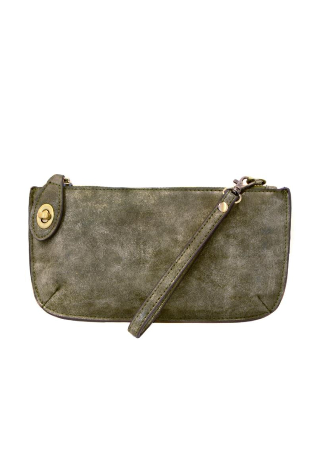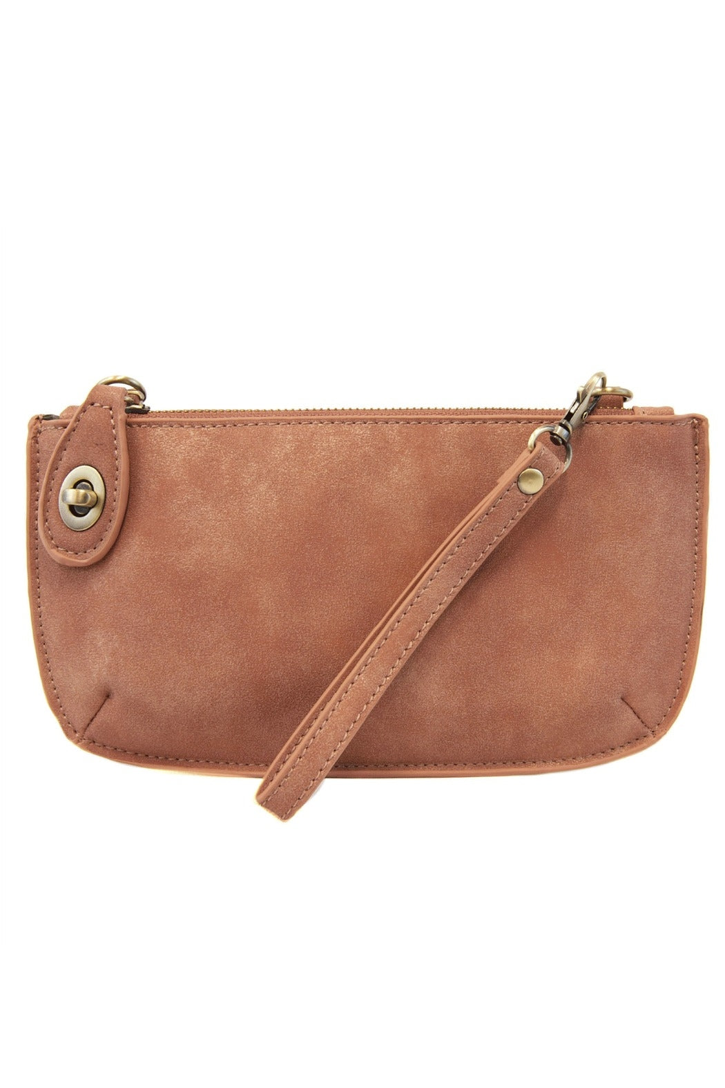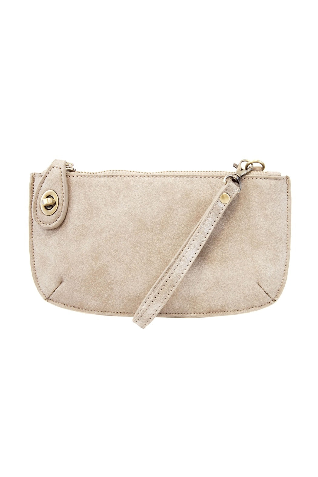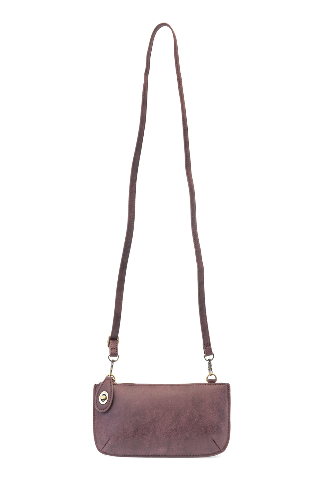The Lux Crossbody Wristlet has a brushed finish, meaning this vegan clutch looks as good as you’ll feel wearing it. Plus, removable straps let you wear it as a wallet, wristlet, or crossbody clutch. 5" high, 9.5? wide, 1? deep Zip closure top with a locking clasp Interior zippered pocket 6 interior card slots Removable and adjustable crossbody strap: 7?-21 Wristlet strap: 5? long Printed lining Brass plated hardware 100% Vegan leather (polyurethane)