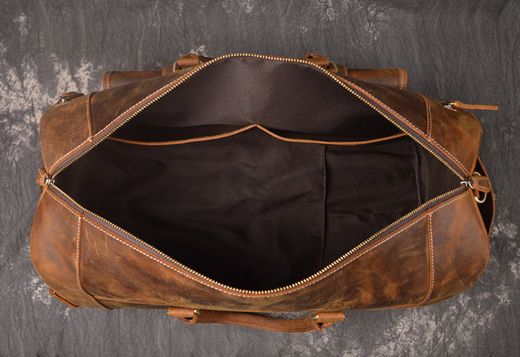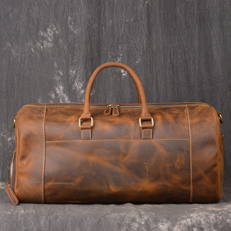 Awesome storage to carry all of his essentials. Multiple storage compartments. The perfect weekend or carry on duffle bag. Rich genuine leather comes in brown or black.