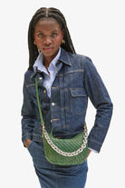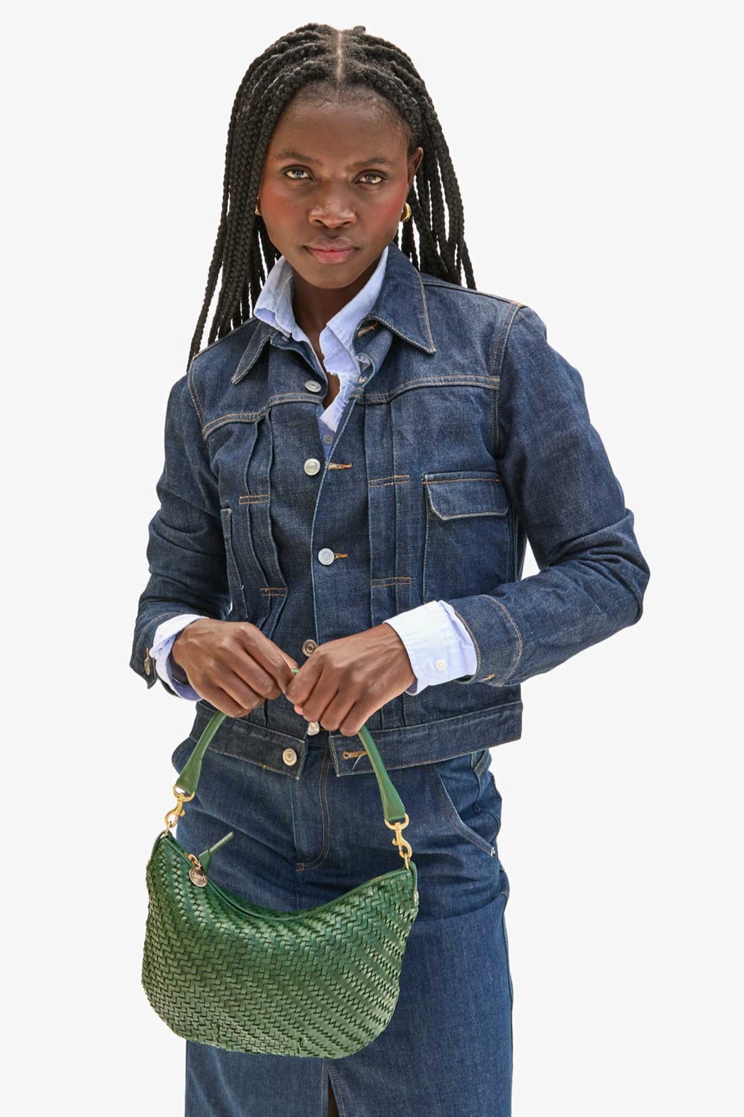 The cutest zip-top mini messenger with tubular shoulder & crossbody straps that holds your phone, keys, small wallet, sunnies . Made of handwoven leather