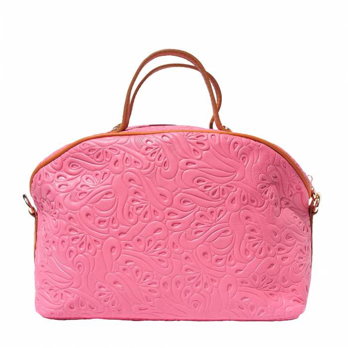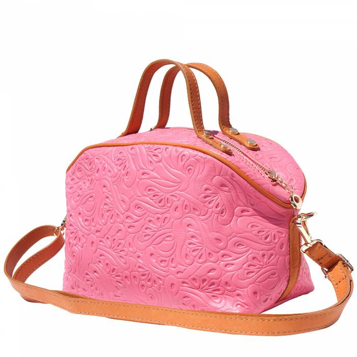Long and removable strap, an interior small (purse like) pocket and a top zip closure.