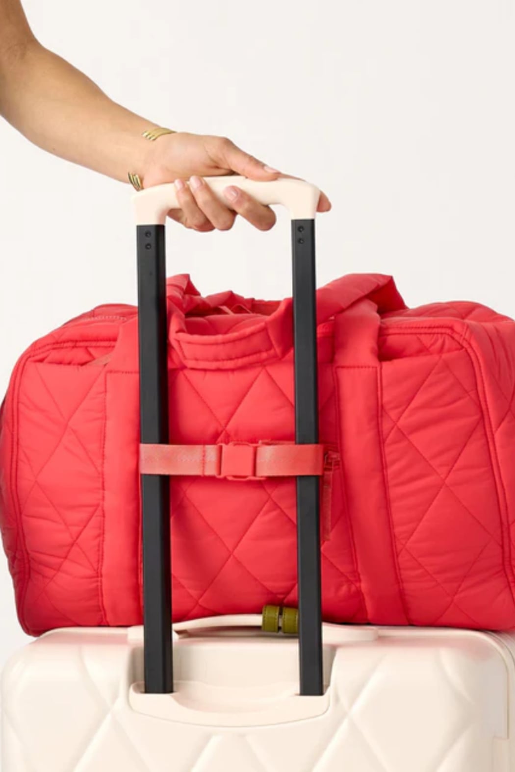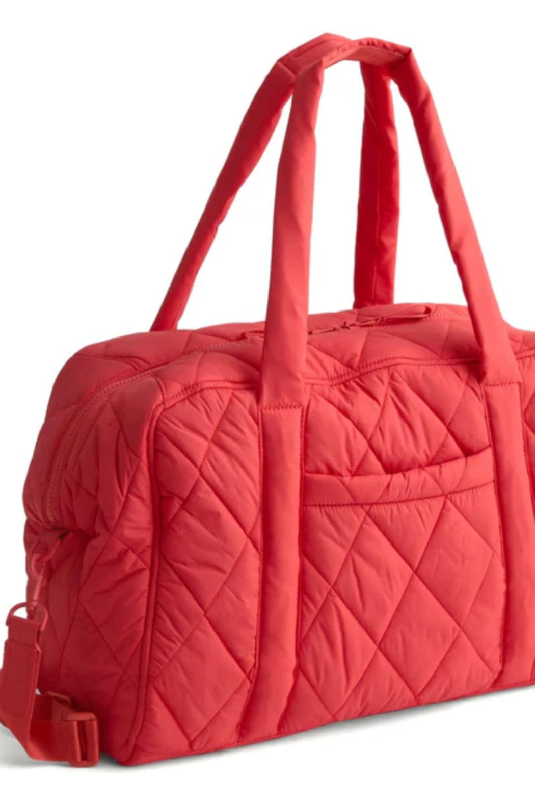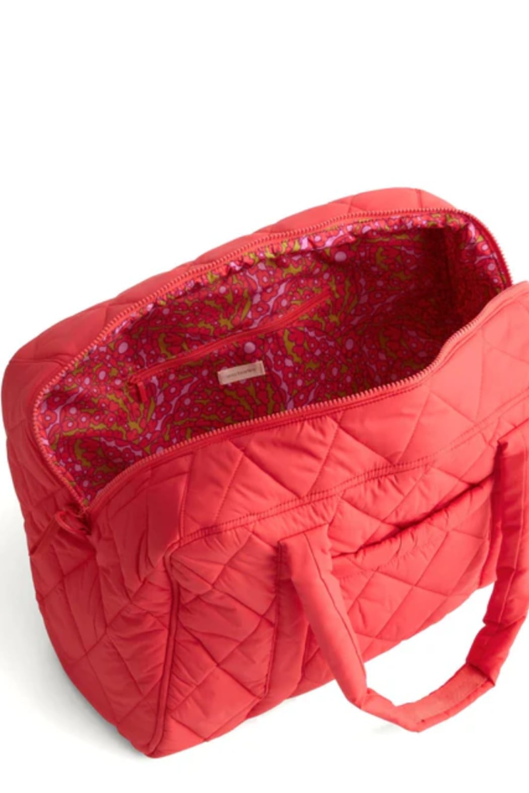 Whether you're jetting off for a weekend adventure or embarking on a short business trip ,the Miramar Weekender in bright and cheerful Cayenne offers the perfect combination of space, organization and style to meet your travel needs. Fashioned in Vera Bradley's quilted nylon "featherweight" fabrication, this bag is just that...extremely lightweight and the perfect carry on bag. Features include a Handle/Strap drop of 10.5"; removable and adjustable strap with a 22" maximum drop length;