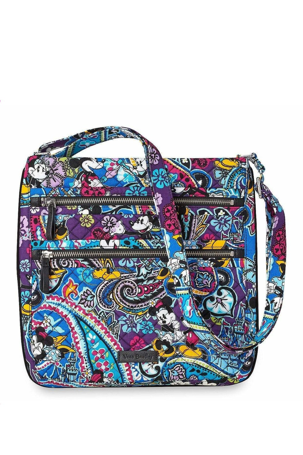 Meet the Vera Bradley Disney Exclusive Triple Zip Hipster in Mickey's Paisley Celebration. With its print of colorful Disney characters and paisleys, you'll love this bag whether you are 8 years old or 88 years old! Mickey's signature icon adorns Vera Bradley's familiar cotton quilted design for this spacious crossbody bag that has room for all your essentials and then some. Zippered main compartment, two exterior front zip pockets (one with two interior slip pockets), and an interior zip pocket with an adorable coordinating cotton printed lining (3rd photo). Adjustable shoulder/ crossbody strap. Machine wash cold, gentle cycle, line dry. Find other Vera Bradley Disney bags and accessories on the "Mimi's Gift Gallery" boutique page.