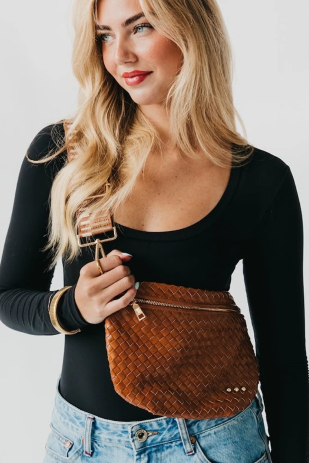 Meet the Westlyn Woven Bum Bag! Gorgeous woven vegan leather, beautiful hardware with a zipper closure, and a zippered slash pocket on the inside. This crossbody bag is the perfect accessory to elevate any outfit!