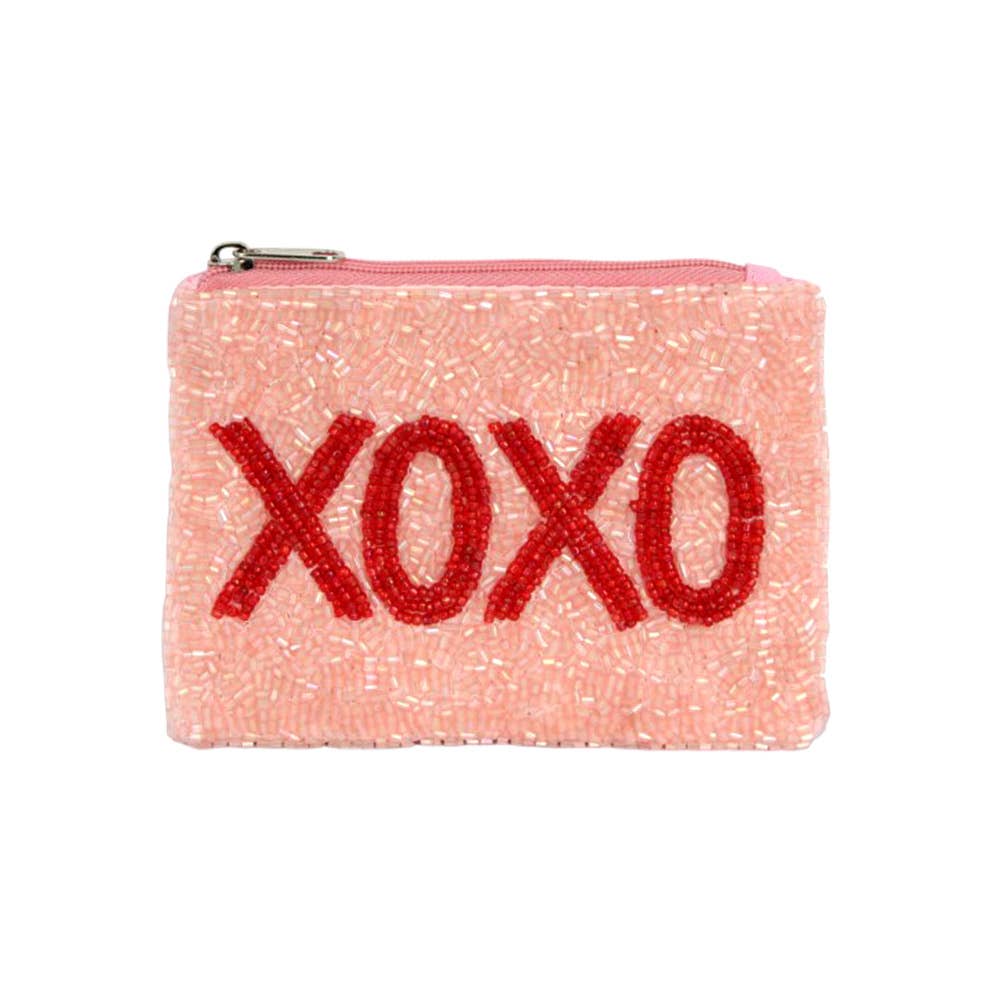 Size : 5" X 4" No Inside Pocket Beads On Front Only Zipper Closure Cute beaded pouch featuring a bold XOXO text design for a fun and expressive touch. Ideal for gifting, themed events, storing small essentials or adding personality to everyday accessories. A sweet and stylish piece perfect for spreading love and charm. Made In India
