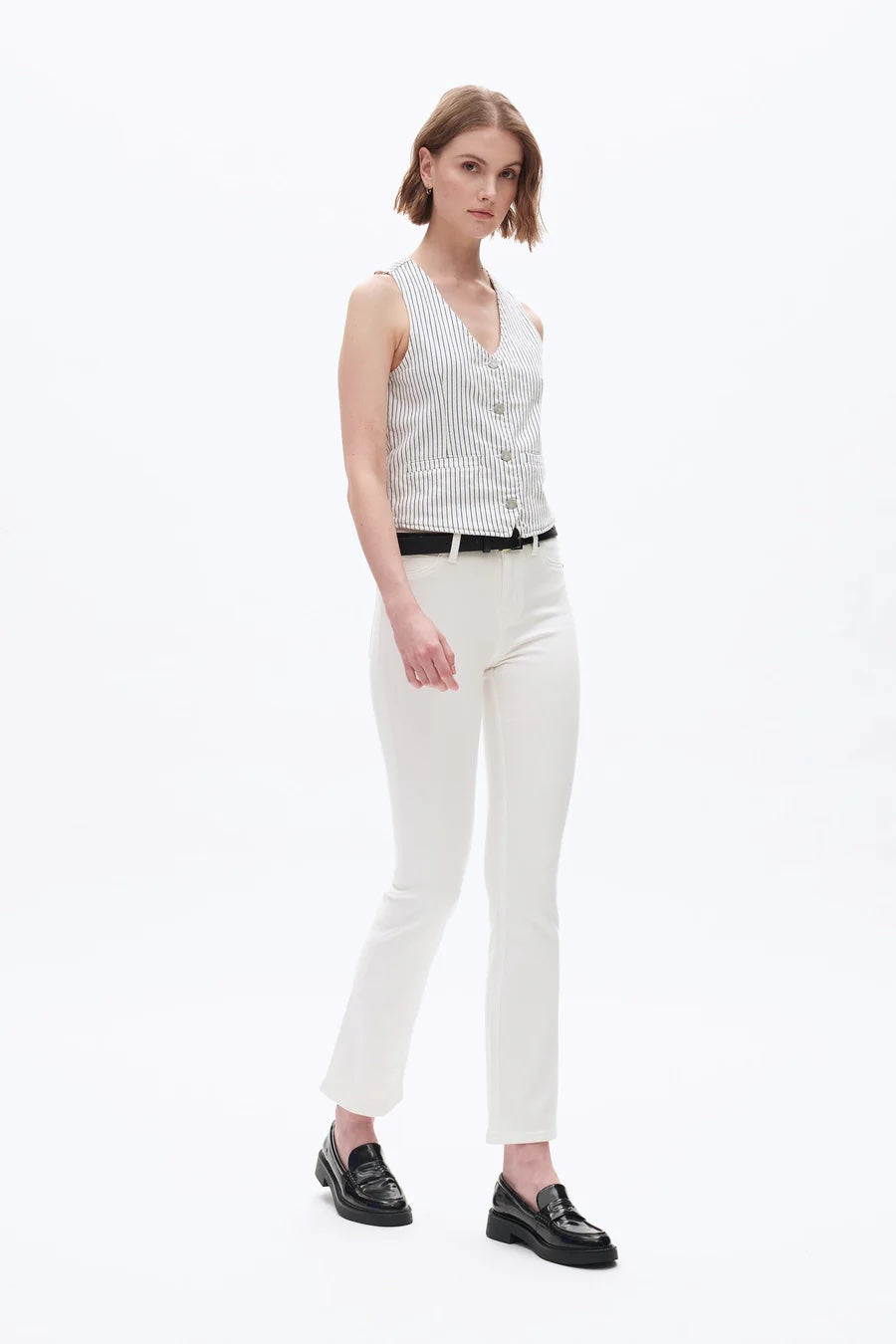 Mid rise slim straight pants basic style, white elastic fabric, well wrapped around the body to create a reasonable body curve.