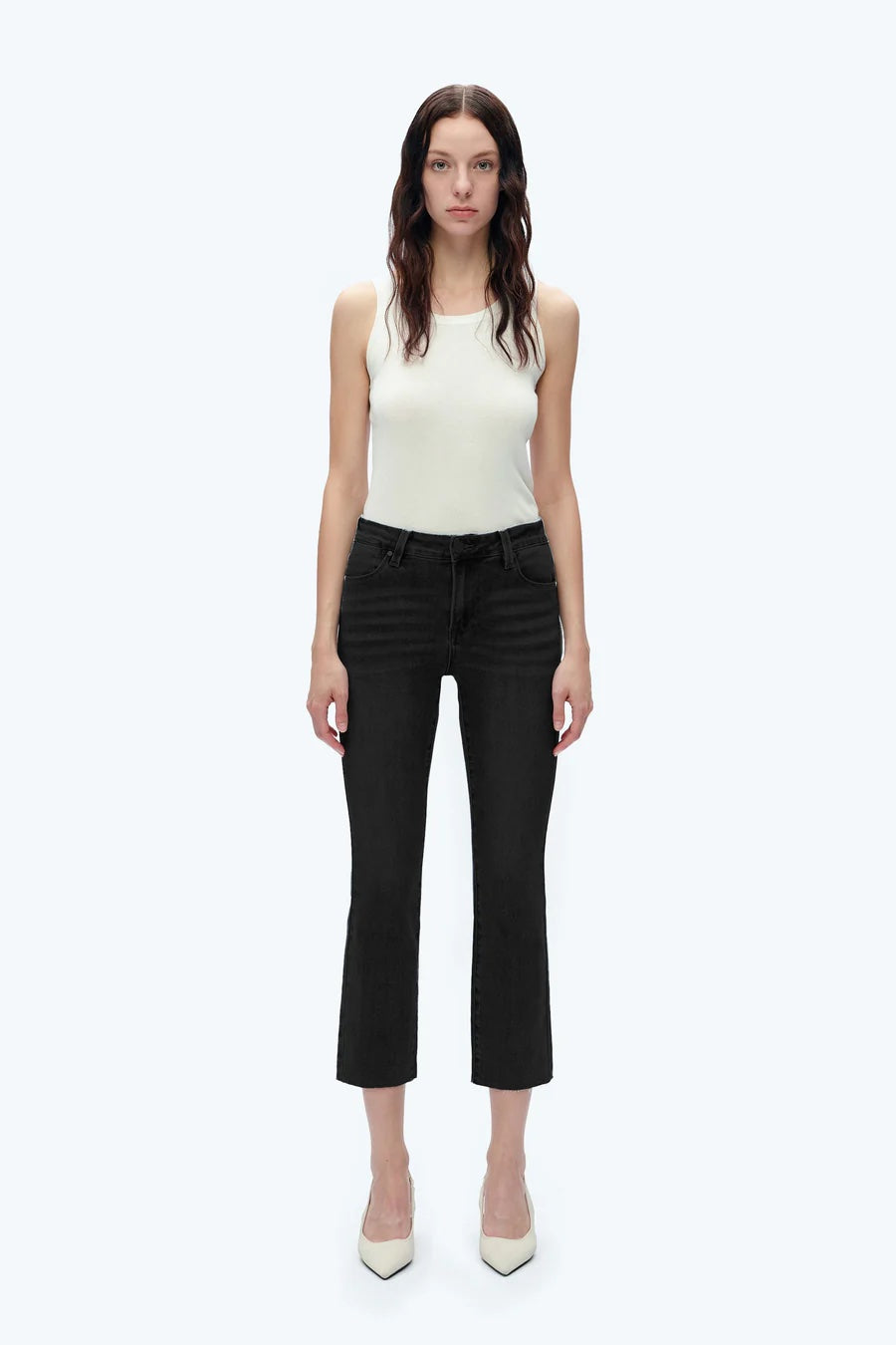 Super comfortable mid-rise straight-leg jeans made from incredibly stretchy denim. These jeans feature a modern hidden front pocket design, 5 pockets, zip fly, whiskering, fading, and a relaxed raw hem.