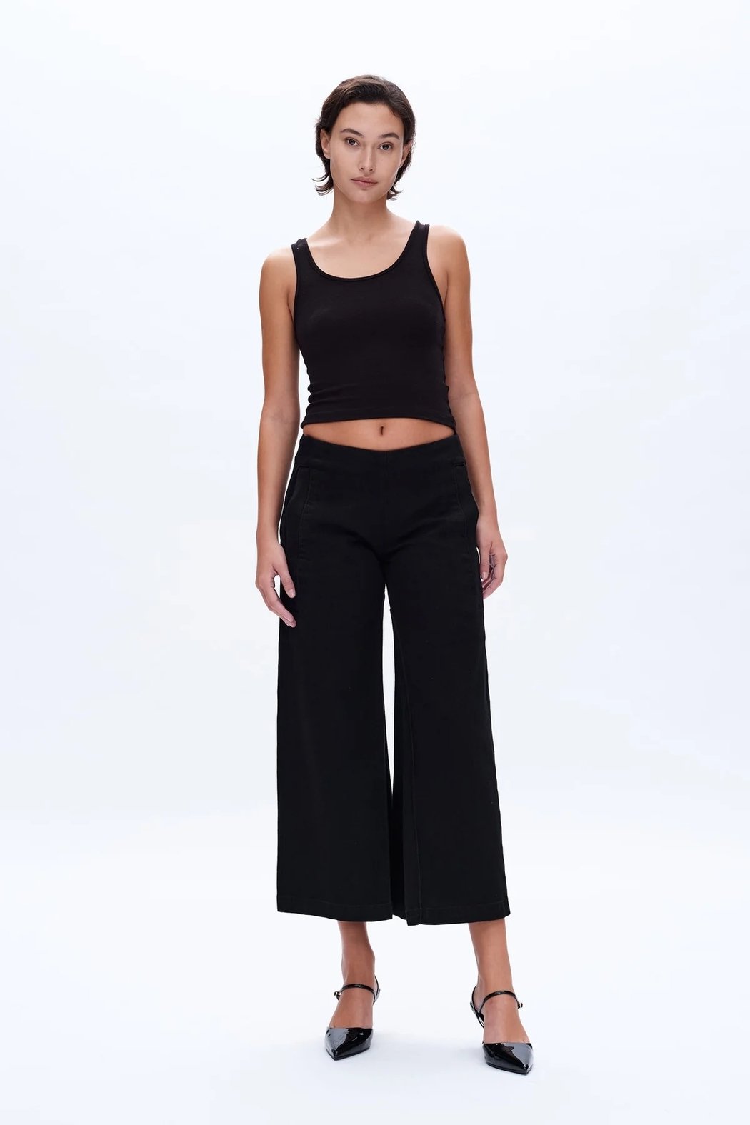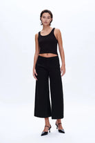 Designed for a relaxed fit, these low-waisted Bermuda trousers by Bayeas feature stretch fabric for comfort. Falling just below the calves, they have no waistband for a clean finish, large utility pockets on the sides, and structured pleats on the inner thigh. One square pocket at the back completes the design.