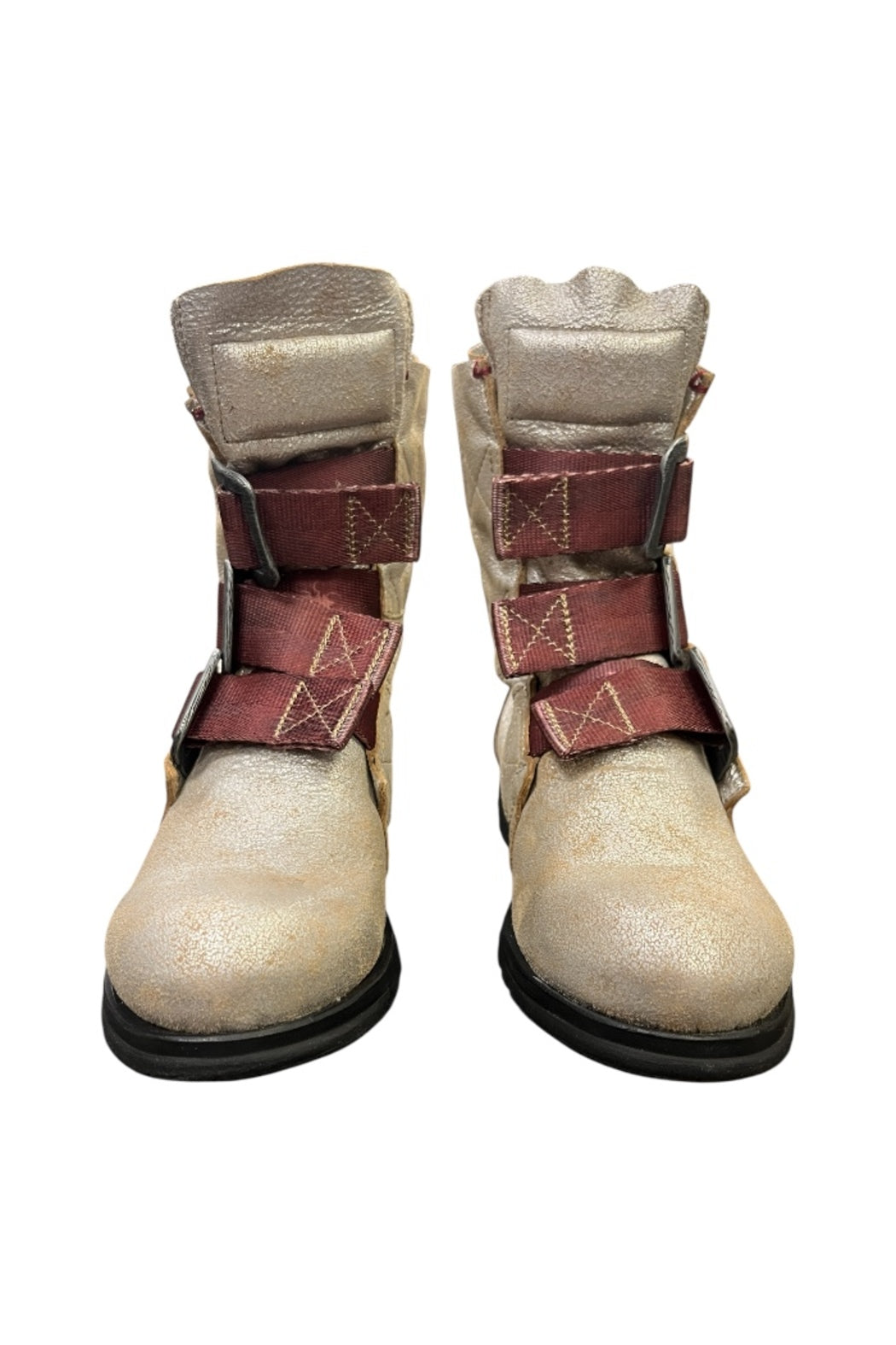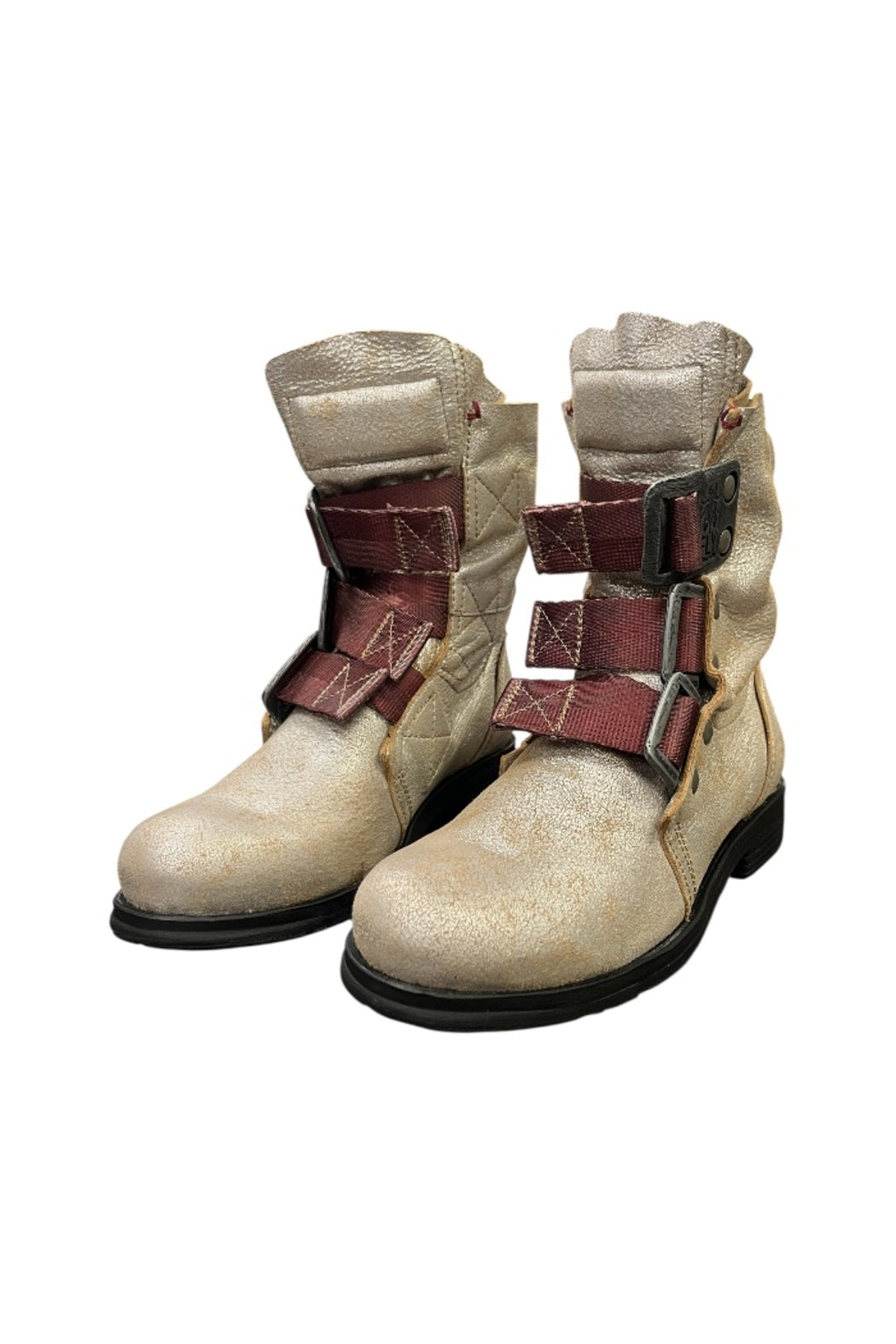 Step into rugged sophistication with the Fly London Pearl Distressed Military Boot. Crafted in soft distressed leather, this lace-up boot combines edgy military-inspired details with modern comfort. Burnished buckles and adjustable straps add a bold statement, while the heavily lugged sole ensures durability and traction for everyday wear. Designed with a removable insole for customizable comfort and a mid-height 9" shaft, this versatile boot transitions seamlessly from casual looks to elevated street style. Distressed leather upper with burnished buckle details Adjustable straps with buckle closures 9" boot shaft, 1" heel (size 39) Removable cushioned insole Leather lining, rubber sole for comfort & grip Imported Perfect for pairing with denim, dresses, or layered fall looks, the Fly London STIF941FLY boot is your new go-to for standout, all-season style.