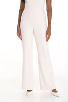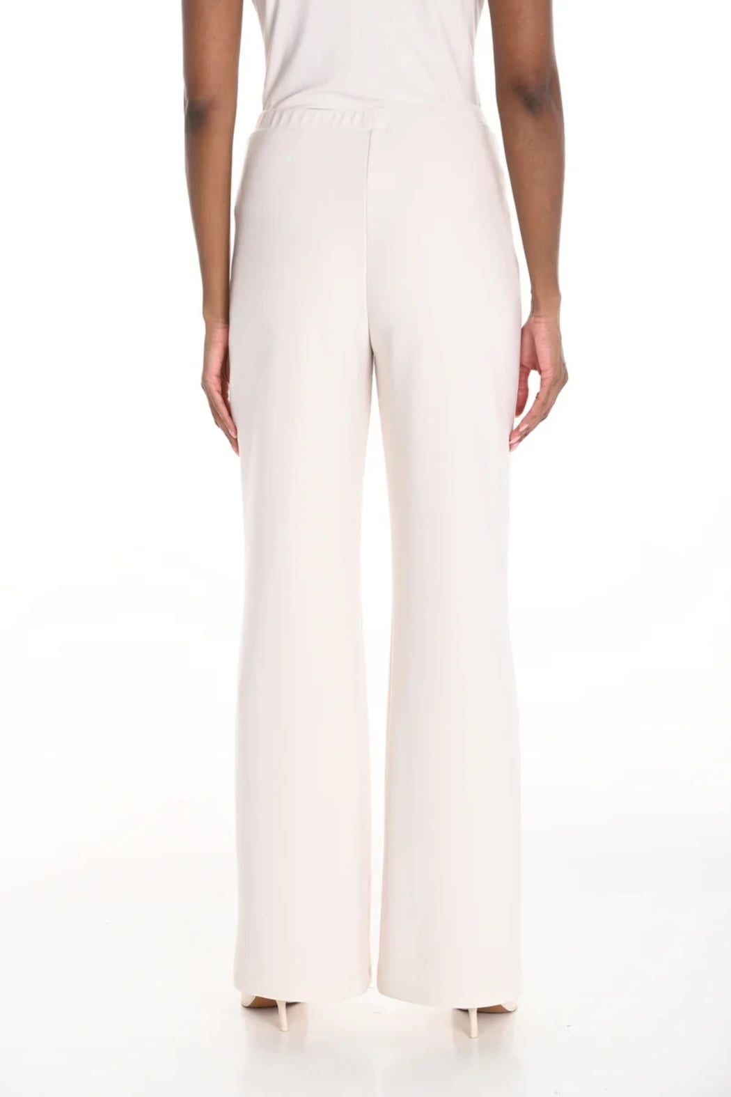 Slip into effortless elegance with the Porcelain Knit Trouser from Frank Lyman. These high-waisted flare trousers feature a clean, minimalist silhouette that flatters the figure and elongates the legs — ideal for both polished office looks and refined evening outfits. Crafted from a luxe, stretchy knit fabric, they offer comfort with structure, draping smoothly while providing movement thanks to the flared leg. The understated design makes them a versatile — and timeless — wardrobe staple you can dress up with a tailored blouse or down with a soft knit top.
