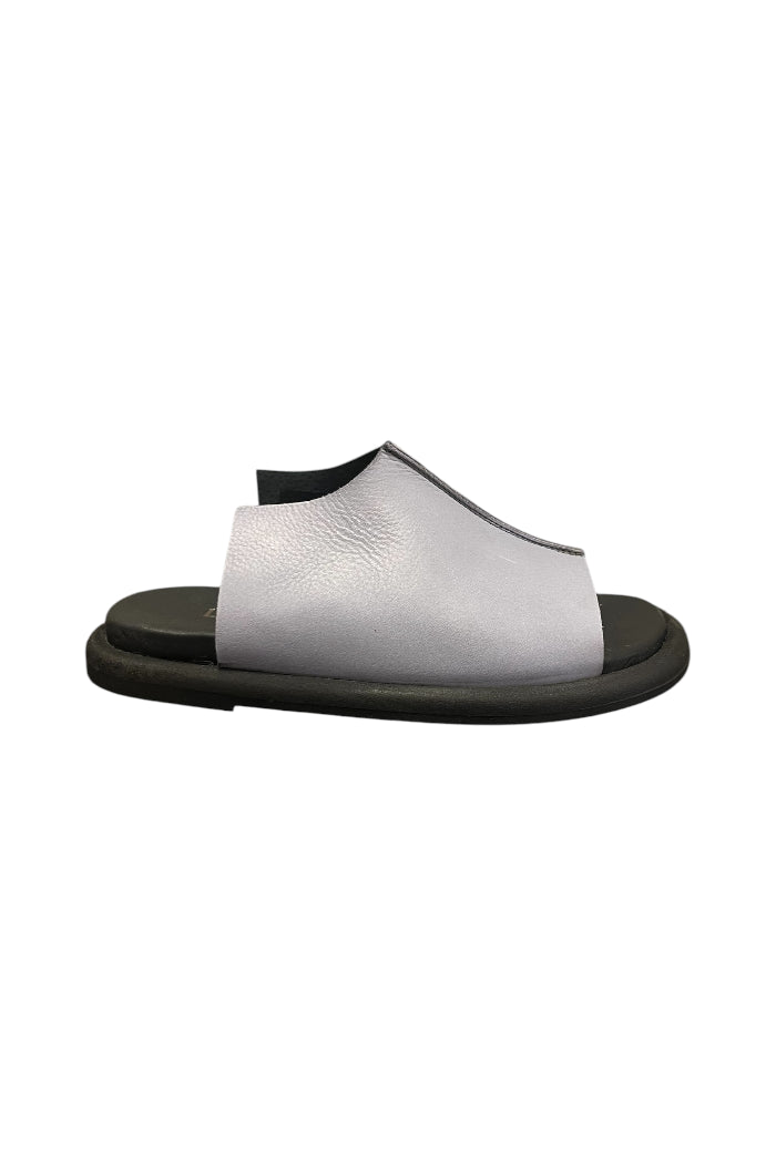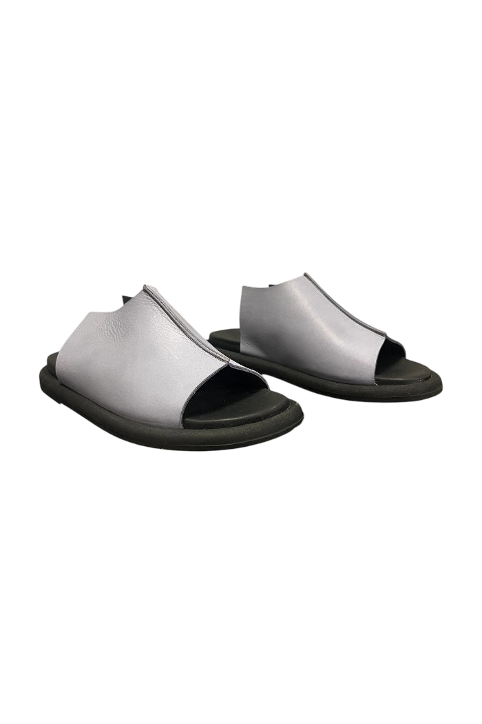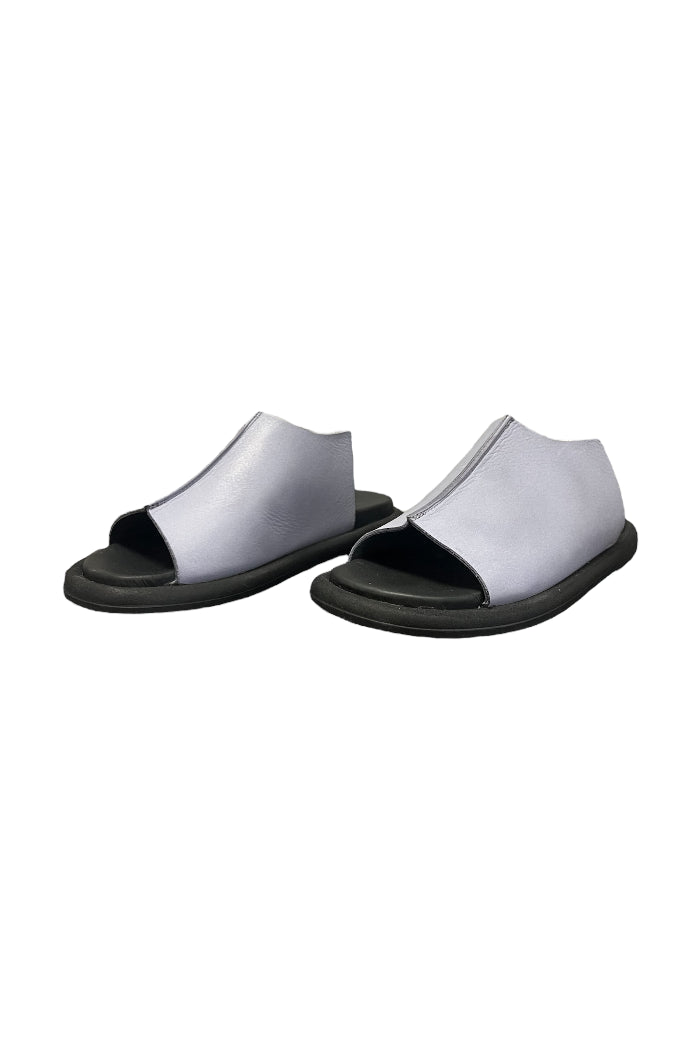 The Lofina 7201 sandals offer a clean, minimalist design in a soft, light grey-blue shade. These flat, slip-on sandals feature a distinctive notch at the top for a modern touch. With their sleek, understated style, they are perfect for adding a casual yet refined element to any outfit. Comfortable and versatile, these sandals are an ideal choice for everyday wear, effortlessly elevating your wardrobe.