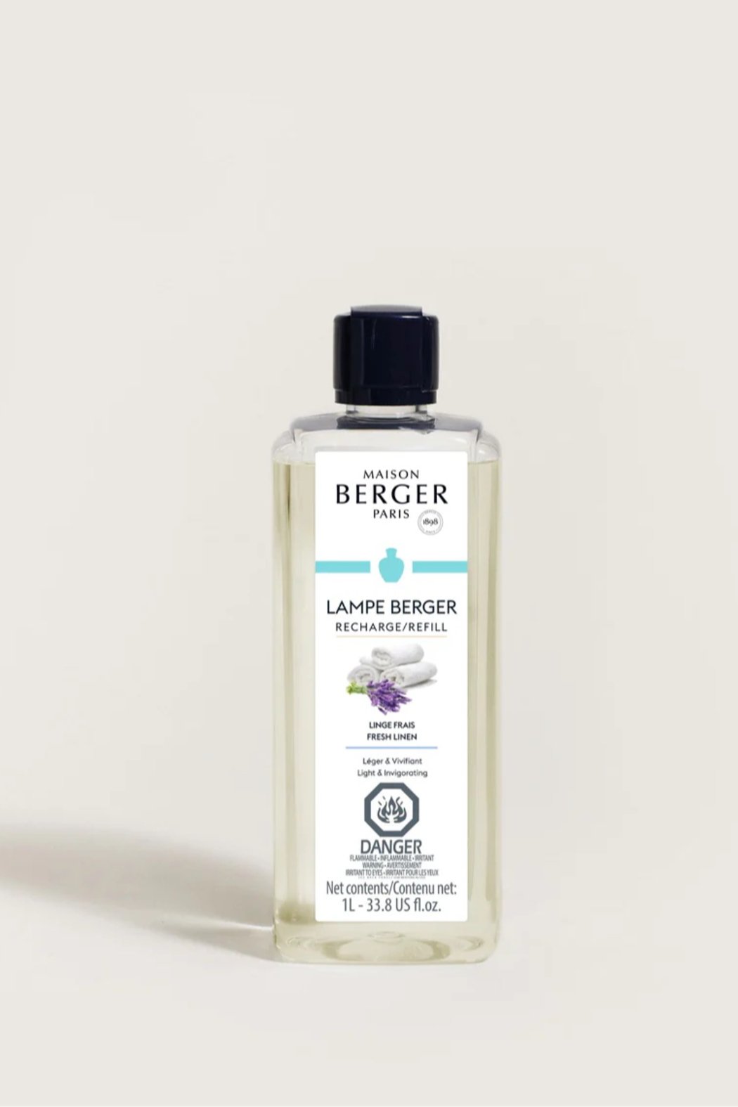 The Fresh Linen home fragrance evokes the innocence of childhood, the embrace of soft fabric, and the scents of violet fields. Fresh eucalyptus and the aromatic subtleties of lavender blend with pine and violet before finishing on tart apple, soft white musk, and warm sandalwood. TOP NOTES Eucalyptus, Aldehydes HEART NOTES Lavender, Pine, Violet BASE NOTES Apple, White Musk, Sandalwood How to use: Use with any Lampe Berger to remove unpleasant odors and delicately perfume your home. How to light a Lampe Berger: Fill the lamp with the accompanying home fragrance. Light the burner. Blow the flame out after a couple of minutes to clean the air and release French fragrance that captivates and allures.