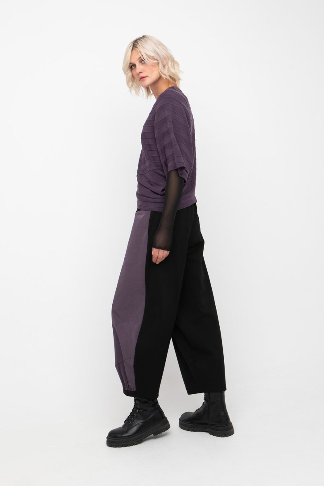 Pair with tailored high-waisted trousers or slim-fit jeans to balance volume.