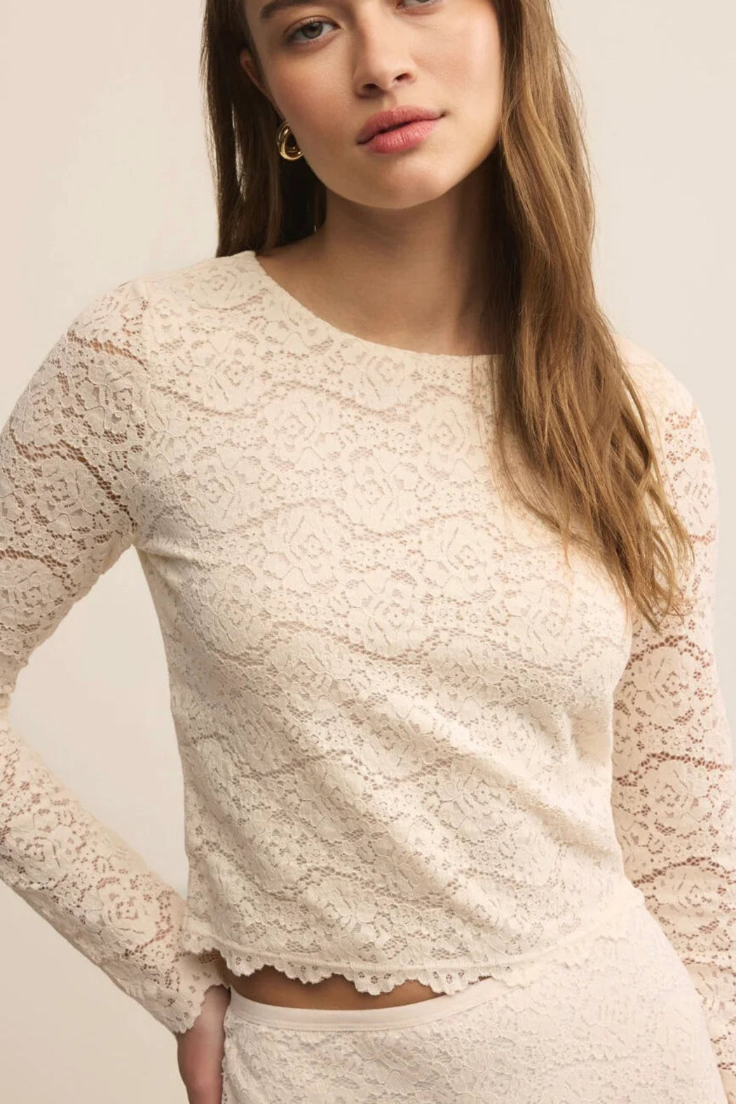 Top includes an elegant, light weight, lace design. Top is slightly cropped with a ruffle like design on the bottom.