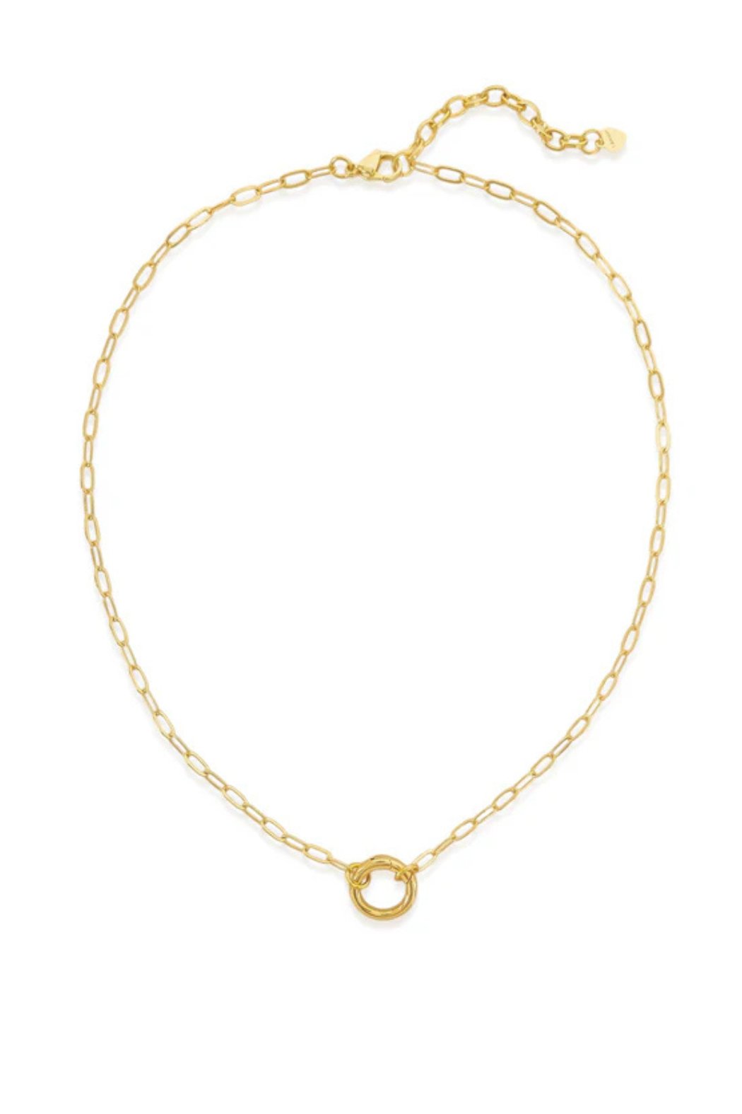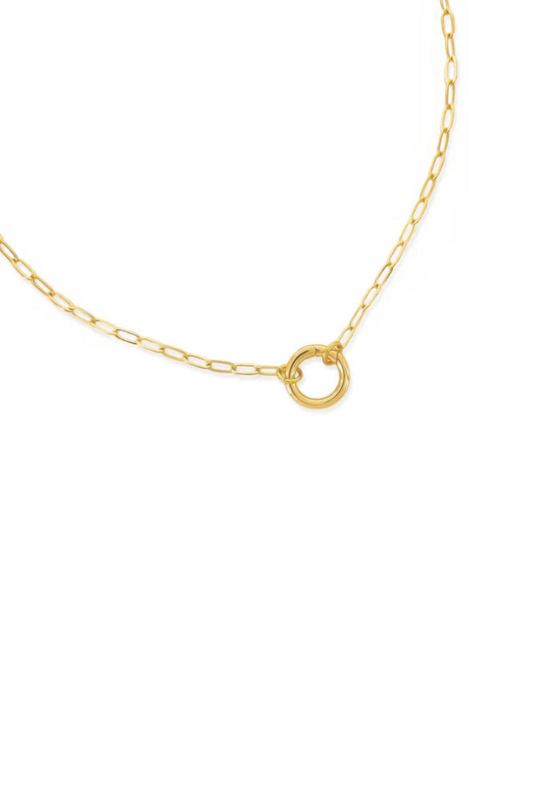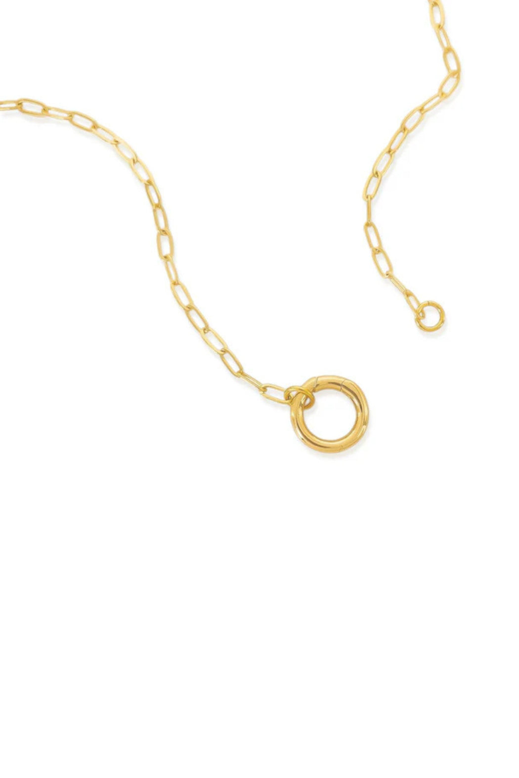 Paperclip Chain Necklace with Spring Ring A fresh twist on the paperclip chain, this necklace features a spring ring designed for easy charm styling. Its bold links offer a clean, structured look, while the customizable clasp invites personal expression. Add your favorite charms to make it uniquely yours. Material: 18k gold plated, triple plated Size: Approx. 3mm thick chain, 0.56" spring ring Length: Approx. 16", plus a 2" extension Closure: Lobster clasp back, spring ring front FINAL SALE