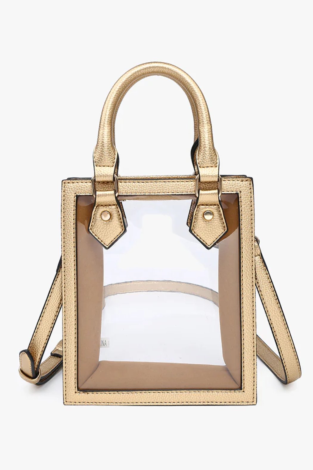 -Modern clear rectangle design with vegan leather trim for a stylish statement.