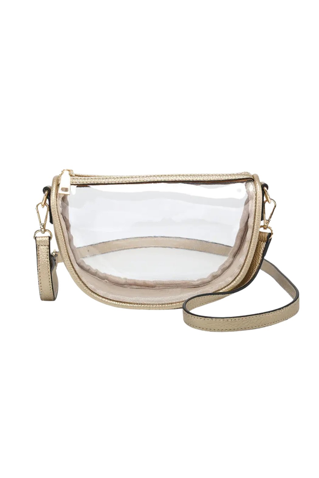 Item Detail: -Clear Semi-Circle Design: Stylish and compliant for event entry -Top Zip Closure: Keeps belongings secure and easily accessible -Adjustable/Removable Strap: Wear it your way — crossbody or over the shoulder -Lightweight & Functional: A compact, practical companion Dimensions: -Length: 8.5 inches -Height: 6 inches -Depth: 3 inches The Peyton Clear Banana Crossbody Bag combines sleek, modern design with event-ready practicality. Featuring a clear semi-circle silhouette and minimalist detailing, this hands-free style is perfect for concerts, stadiums, and everyday use when you need quick visibility of your essentials. FINAL SALE