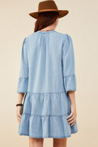 Womens Washed Button Detail Ruffle Sleeve Tencel Dress *Washed Denim Fabric *Button Detail *Ruffle Sleeve
