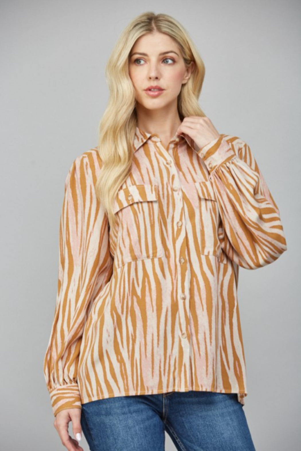 Tiger Button Down Top