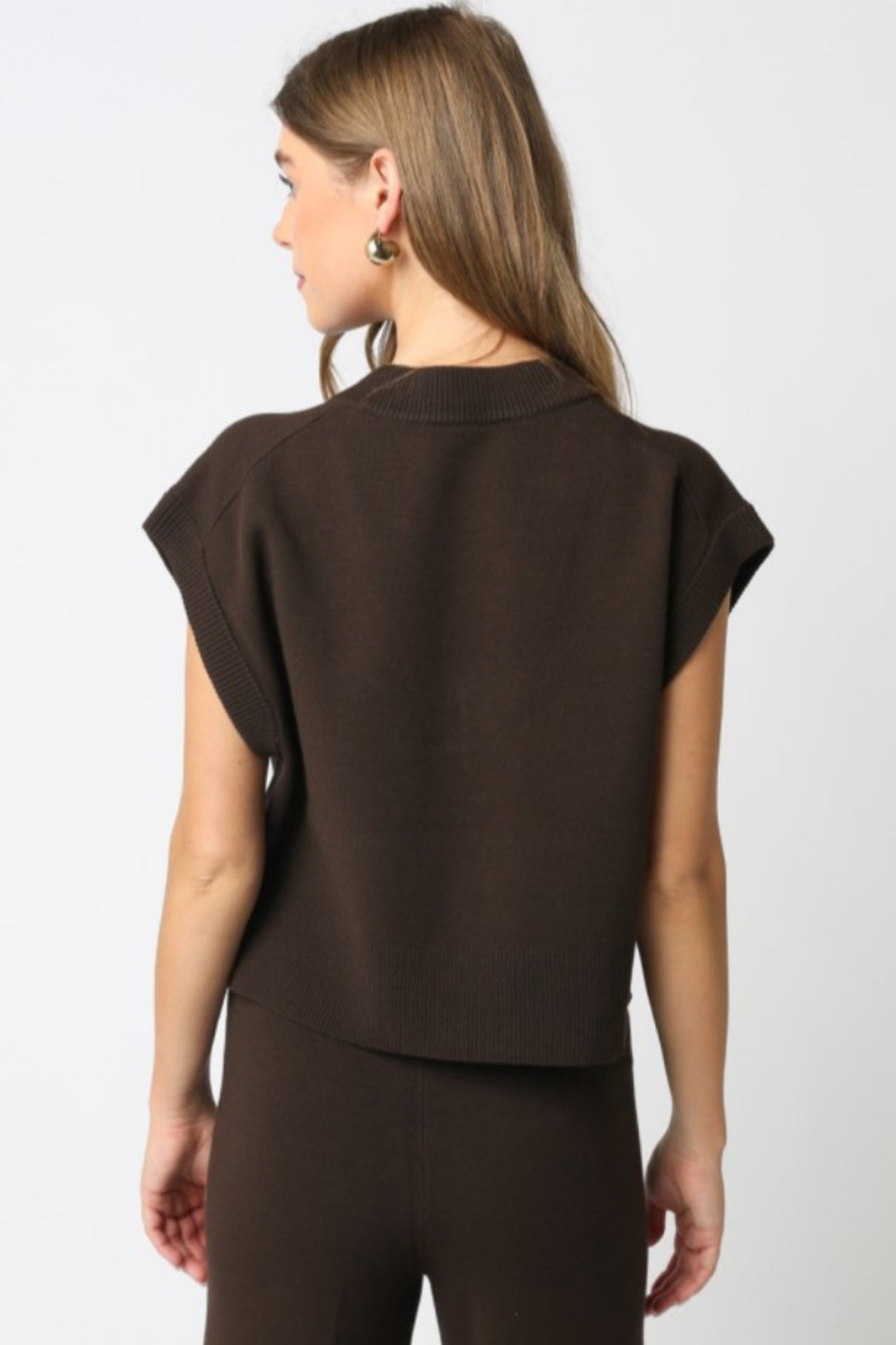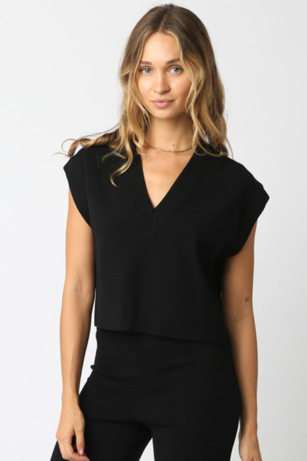 Our Stacy Knit Vest features a sleeveless and a V neckline.