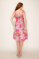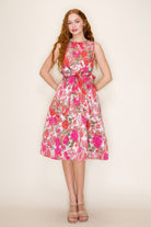 BOAT NECKLINE V-BACK FIT-AND-FLARE MIDI DRESS IN FLORAL JQD