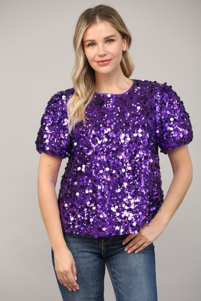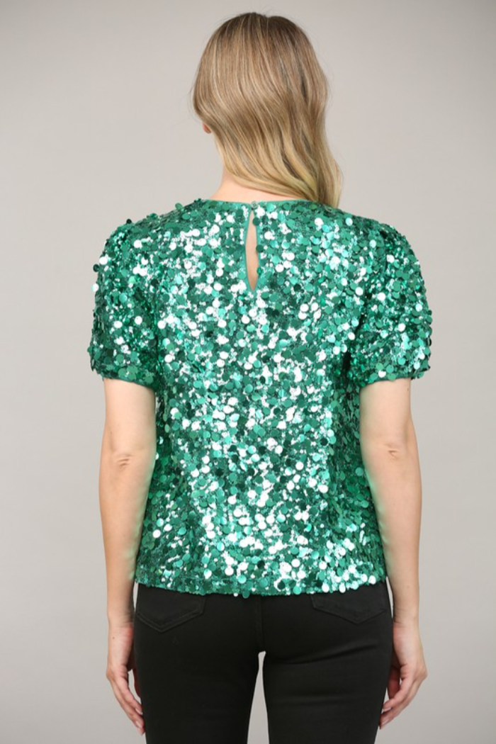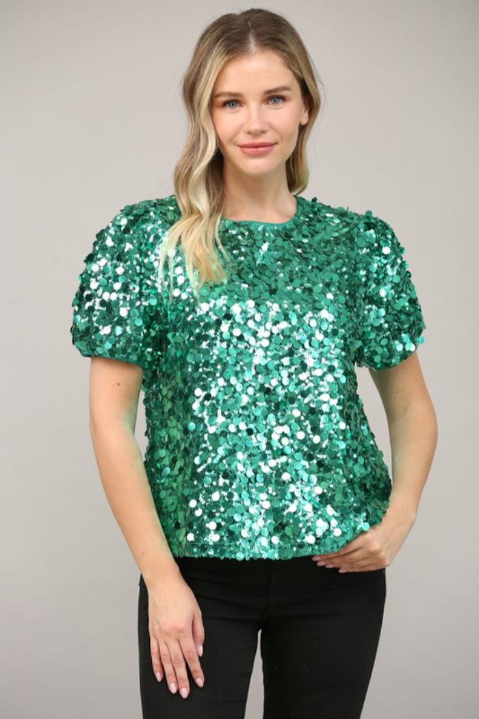 SEQUIN EMBELLISHED SHORT PUFF SLEEVE TOP