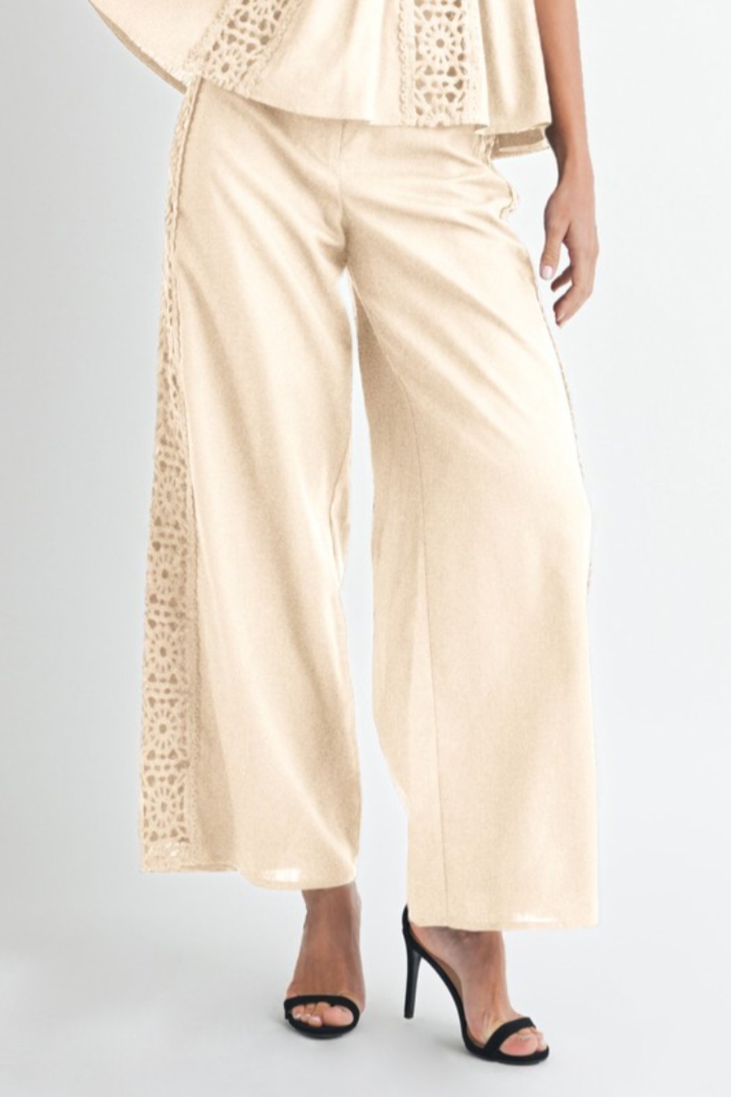 These pants feature elegant side crochet detailing and a full lining, making them both chic and beautiful. Perfect for transitioning from work to outings, they offer a stylish versatility that's hard to beat