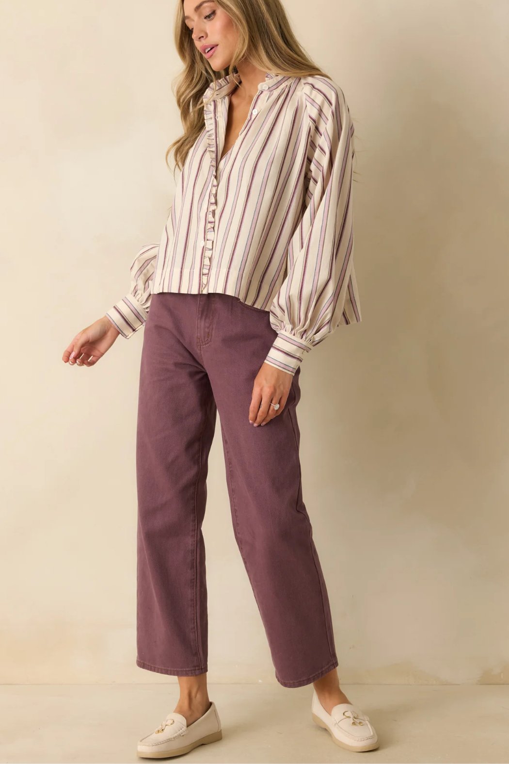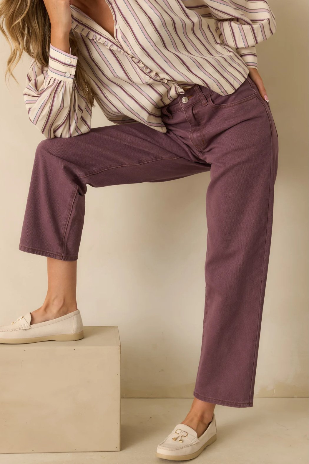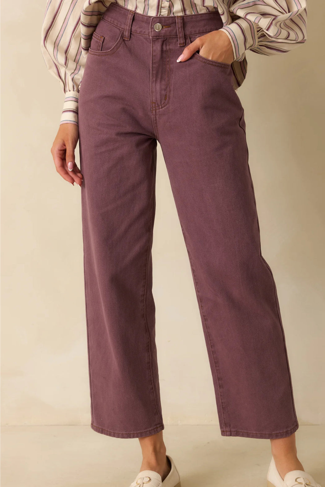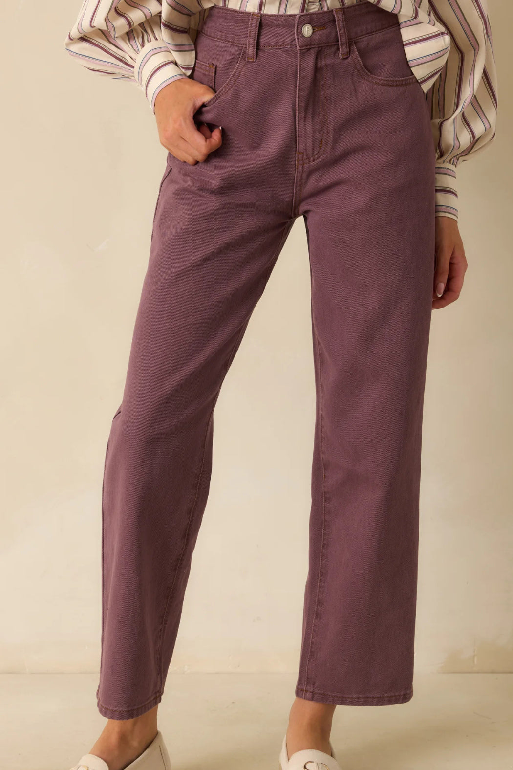 The FRNCH Violet High Rise Pepper Jeans bring a fresh twist to a classic silhouette with their soft plum-toned wash and effortlessly modern fit. Structured yet easygoing, they’re the kind of denim that pairs just as well with polished blouses as with your favorite knits. These violet jeans feature a high-rise waist and straight-leg silhouette crafted from structured cotton denim with functional pockets and a classic zip fly closure.