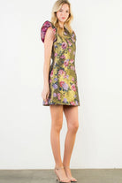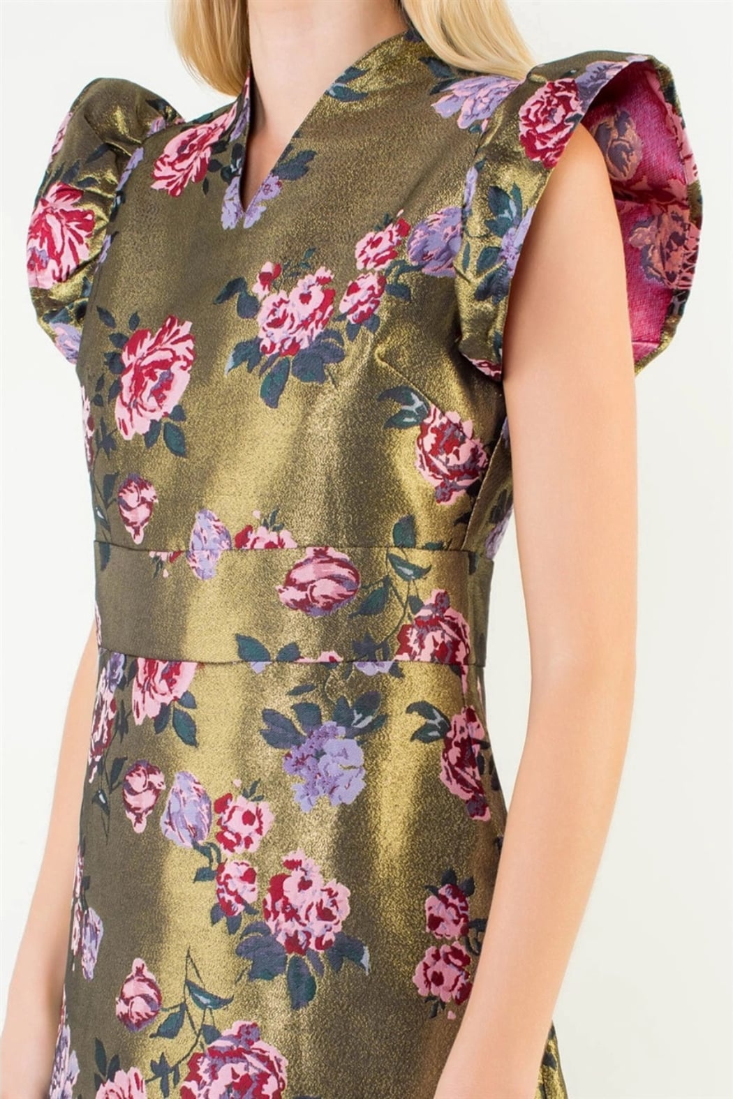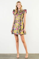 Ruffled Sleeve Floral Print Dress Style Measurements for Size S Designed in USA - Body Length: 24 1/2 in - Bust Width: 37 in - Sleeve Length: 3 1/2 in Model Sizes - Wearing Size S - Height 5' 9", Bust 32", Waist 25 1/2", Hips 36" Fabric Content - WOVEN / 100% Polyester