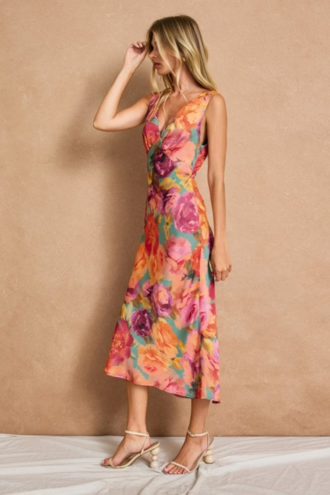 Midi dress Floral print. Model is 5'9" and wearing size Small.