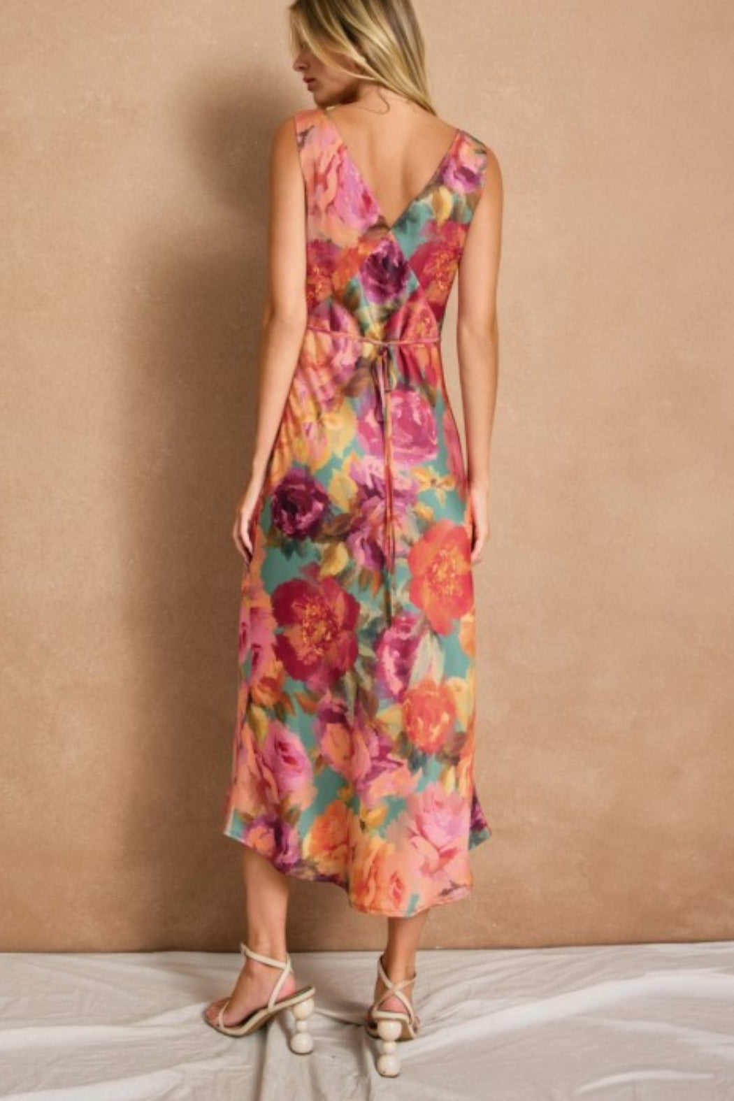 - Adjustable tie at back waist