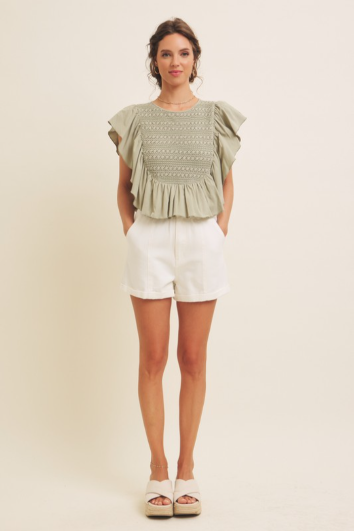 Flutter Slv Smocked Top