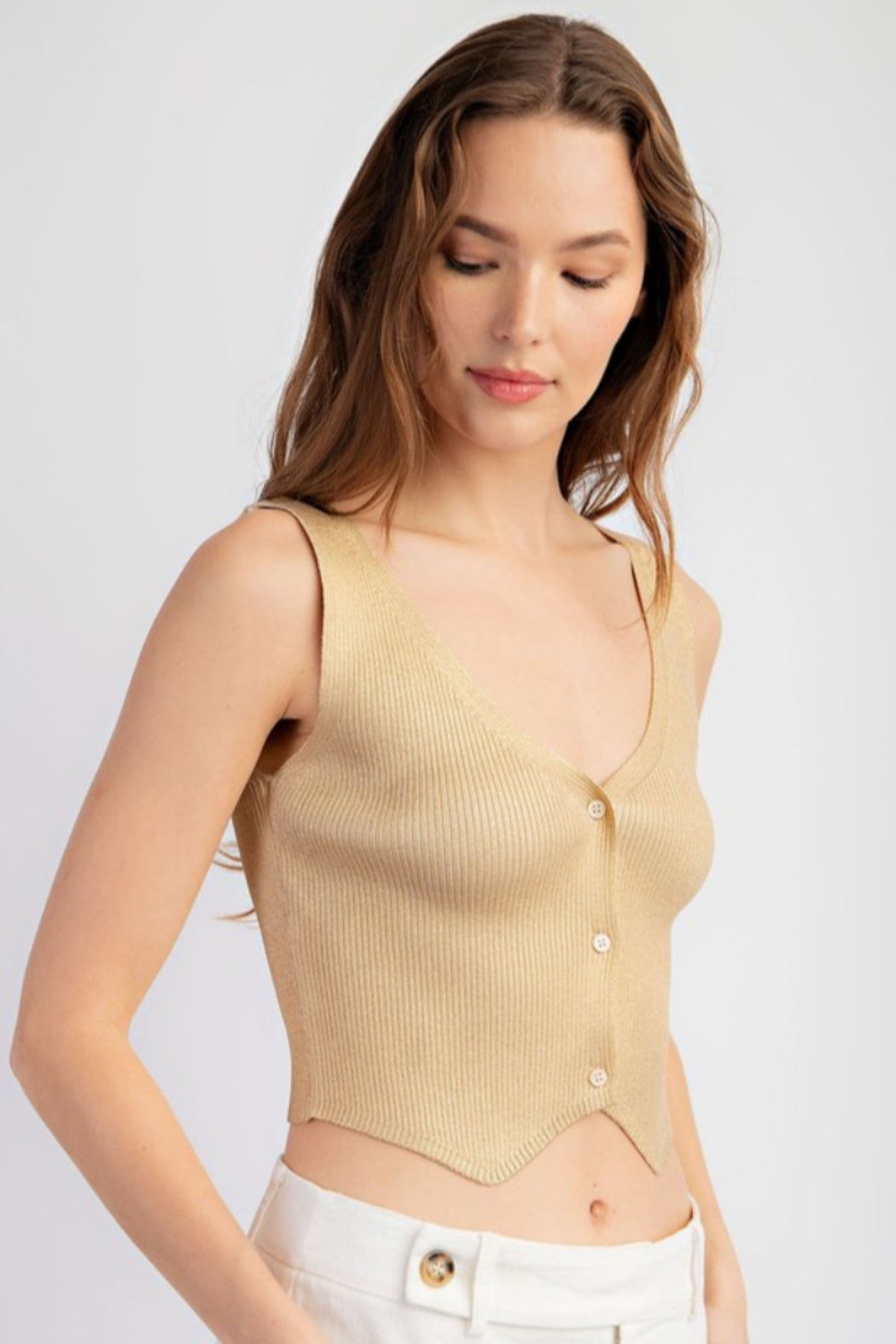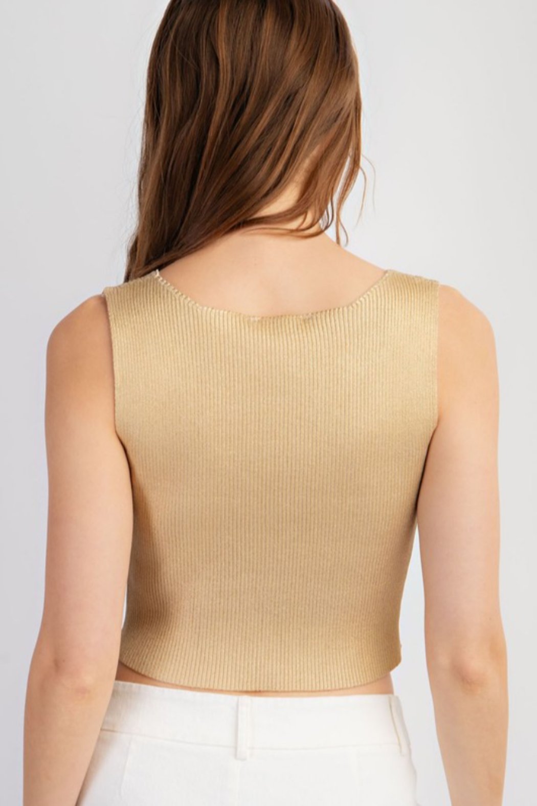 Foiled Ribbed Knit Button Down Tank Top