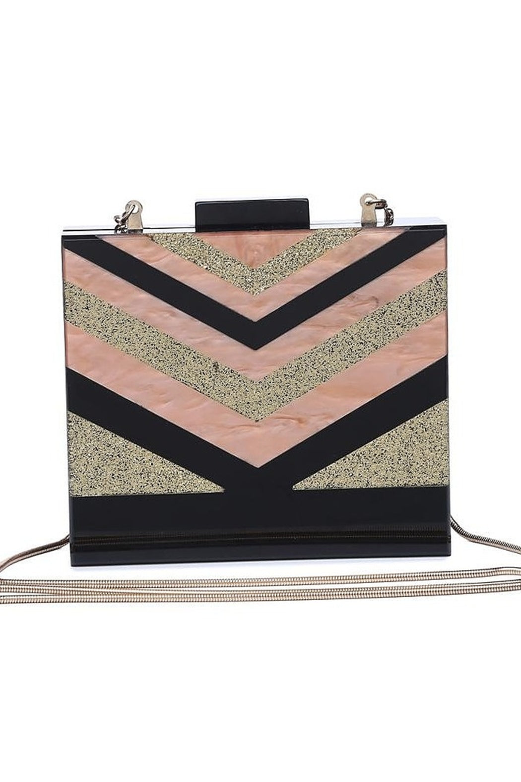 Exterior Details: Front striped v-pattern w/ gold or neon, sleek + structured shape