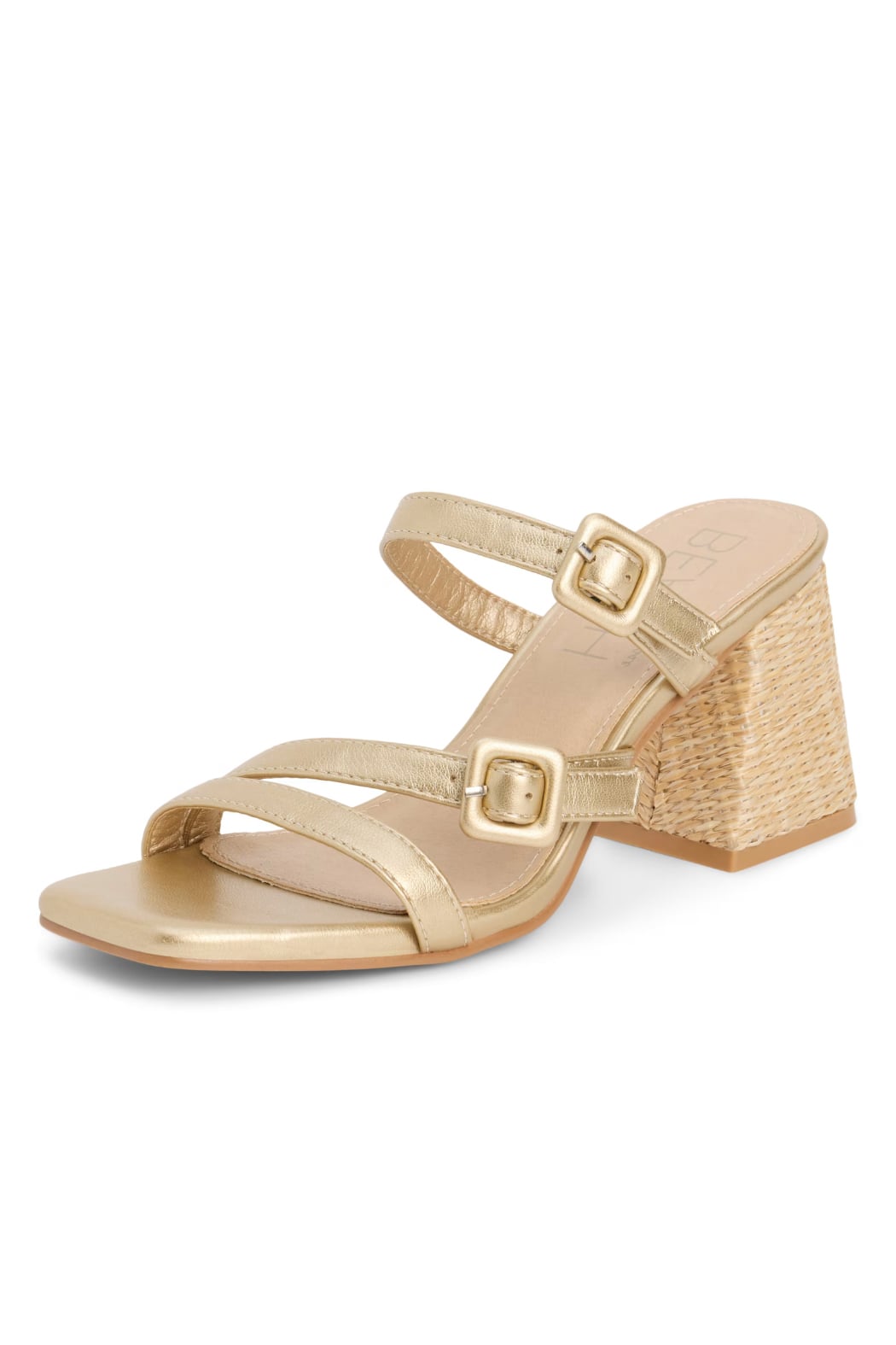 A flared block heel, square toe and buckle straps shape the trend-right silhouette of this faux-leather sandal ready for sunny days. 2" heel Cushioned footbed Synthetic upper, lining and sole Imported Item #11304482 Helpful info: true to size. Whole sizes only; for ½ sizes, order next size up.