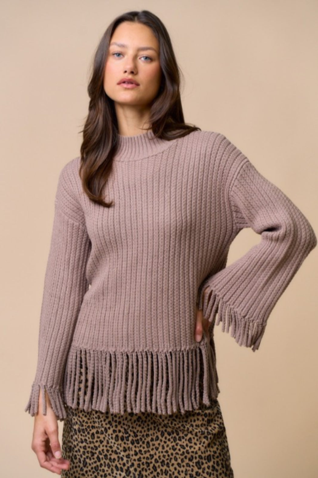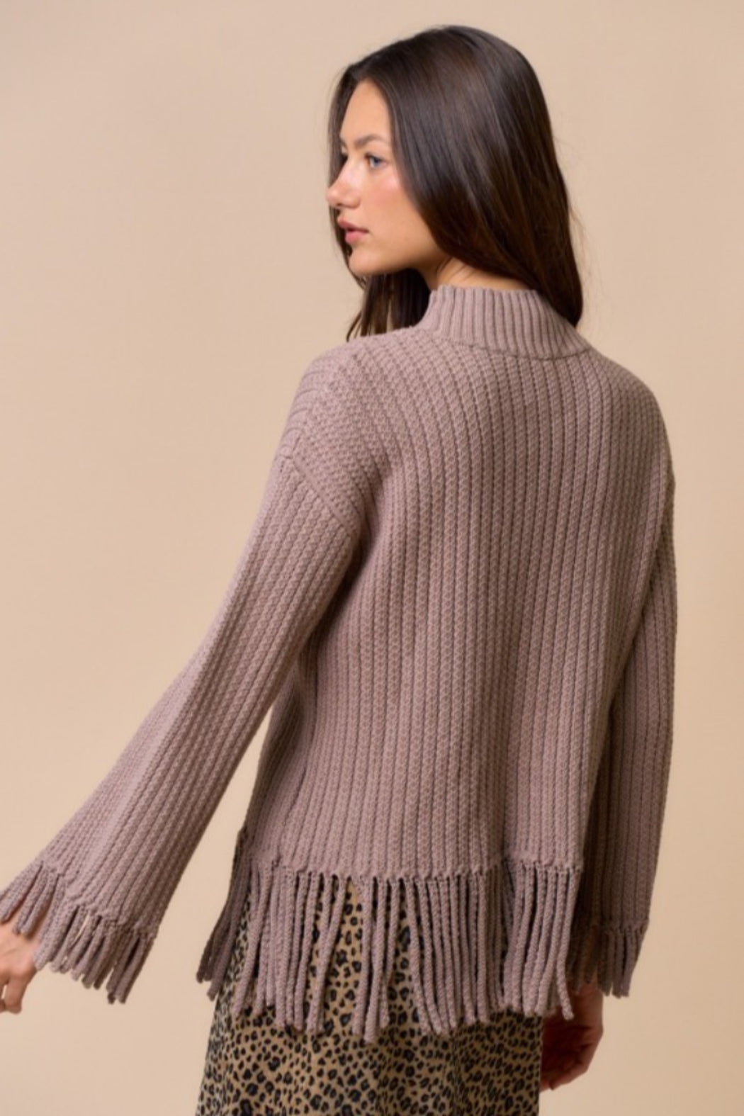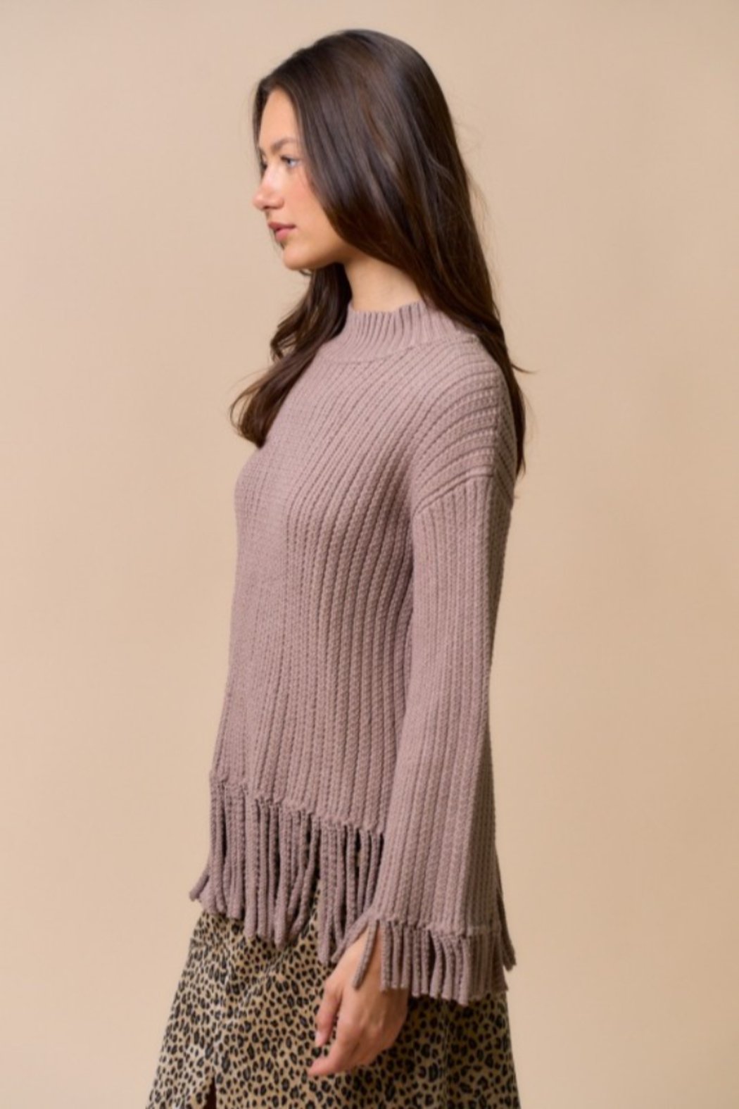Mock Neck Fringe Sweater