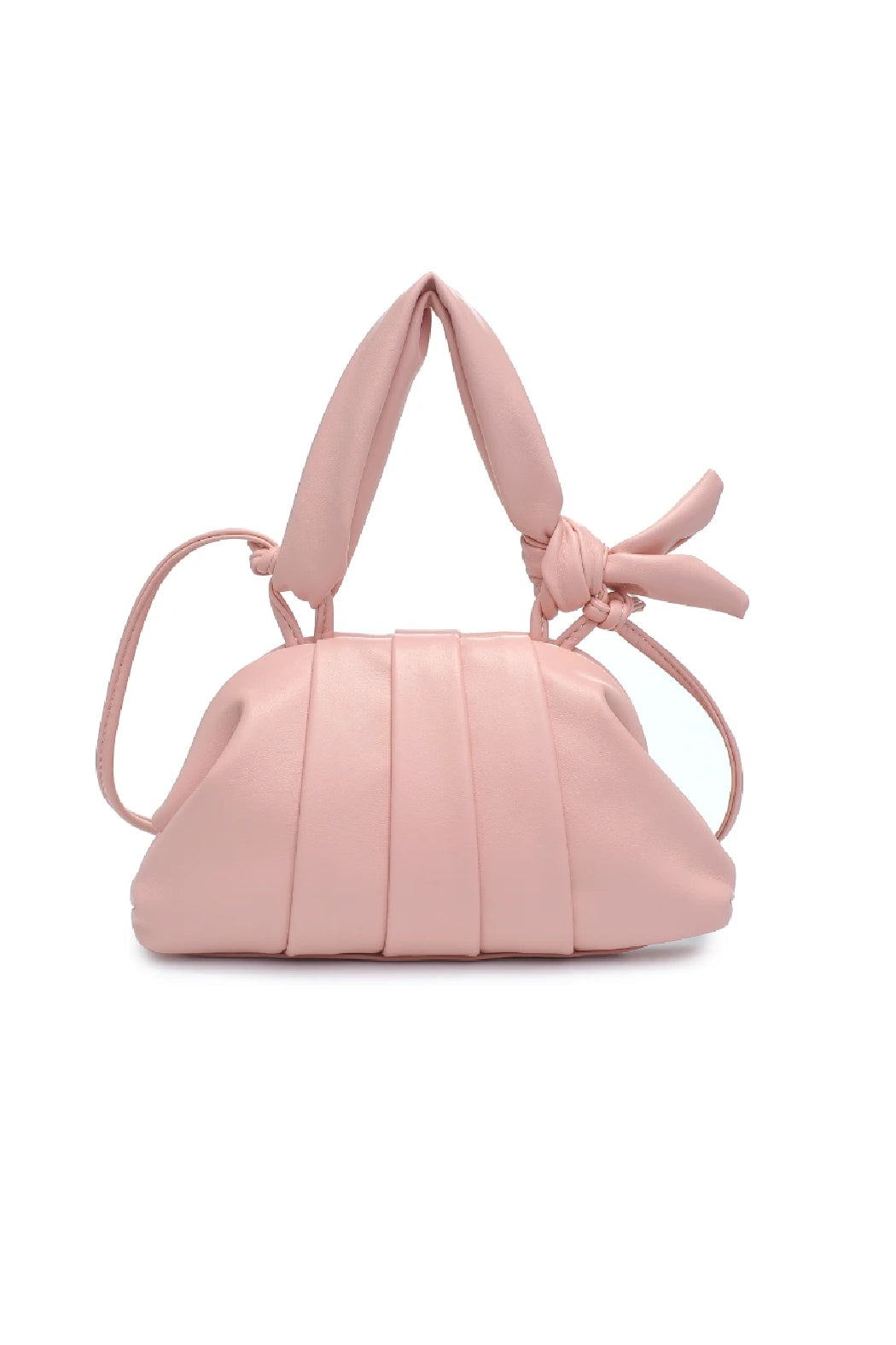 Exterior Details: Soft + slouchy shape, knotted handle detail, ruching