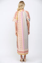 PATCHWORK PRINT DEEP V-NECKLINE KAFTAN STYLE DRESS