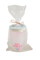 2-piece set. Ten frosted party cups come with ten paper coasters.