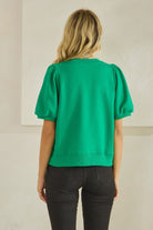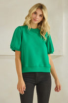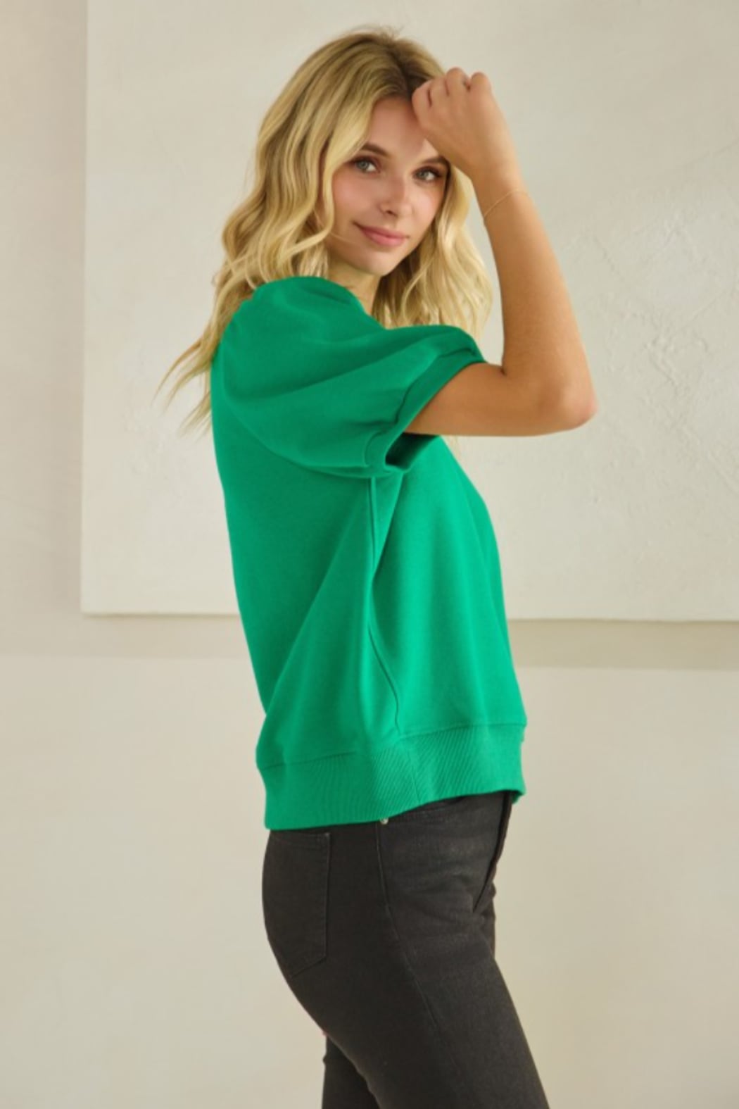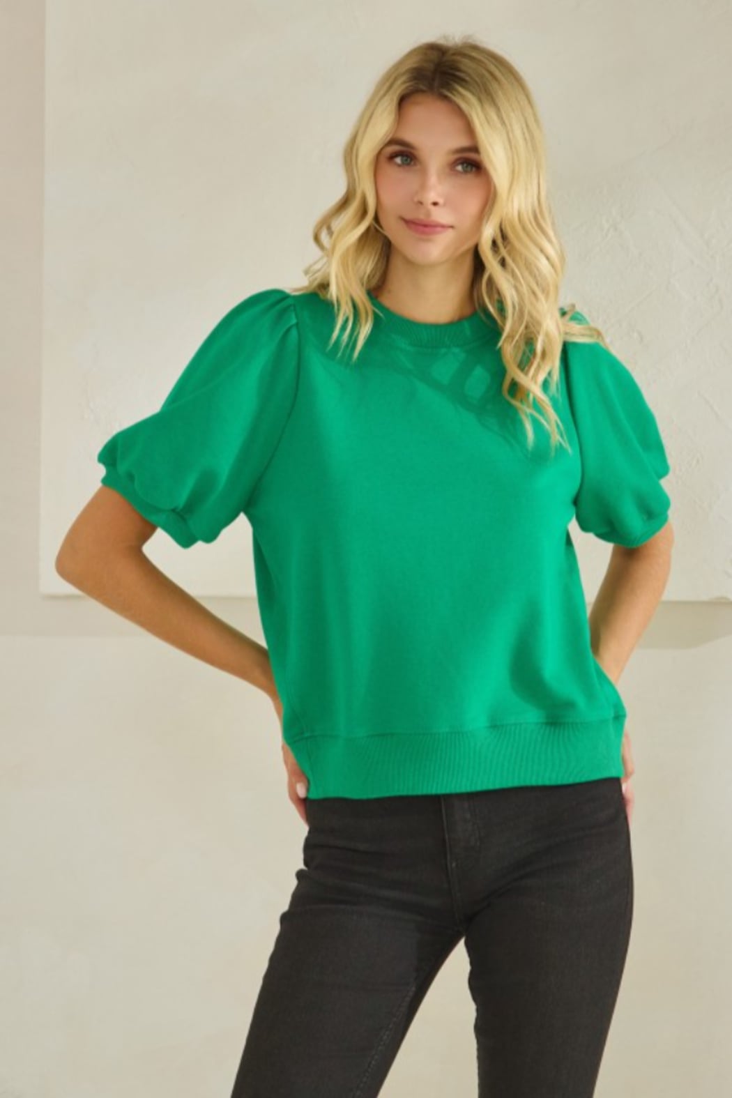 PUFF-SLEEVE TERRY FABRICATION SWEATSHIRT TOP