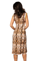This Colorblock Trim Midi Dress is a sleeveless, calf-length dress in a snakeskin print with bright colorblock trim at the armholes. Queen Of Sparkles designed it with a slim, body-skimming silhouette that reads modern and slightly edgy. Wear it for weekend outings or dressed up with heels for a night out.