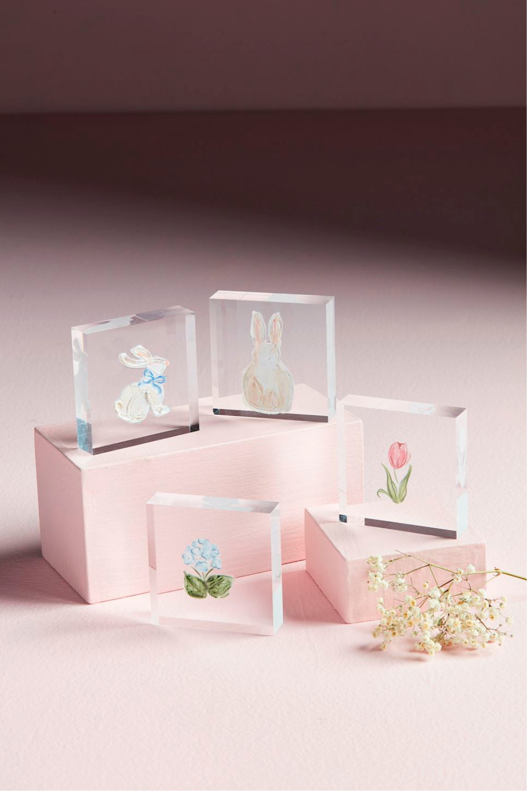 Hand-painted acrylic decorative block. Comes wrapped in cello with ribbon.