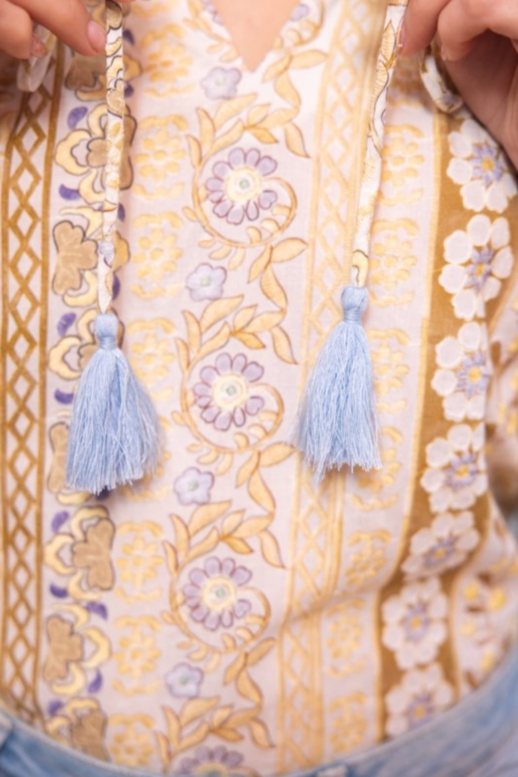 Tassel Detail Embroidery Blouse