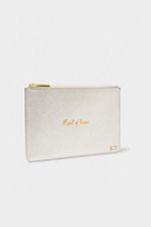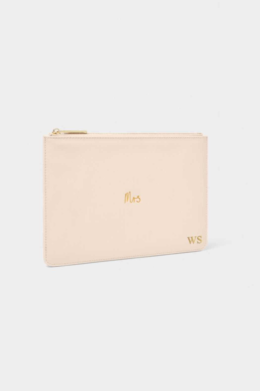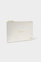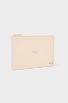 Wedding season has officially arrived, and our Bridal Perfect Pouches are here to see your bridal party walk down the aisle in the most stylish way! This gorgeous style features a soft vegan leather material in the shade white, with contrasting gold-tone hardware for the most luxurious finish. Complete with the sweet embroidered sentiment 'Mrs'.