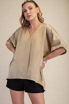 V-Neck High Low Blouse