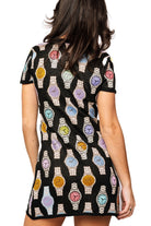 A playful knit mini with an allover colorful watch motif, the Watch Knit Dress is a short, sweater-style silhouette that stands out in casual settings. The piece features short sleeves and a close, relaxed fit that reads modern and fun. Queen Of Sparkles designed this dress to be an easy statement layer for daytime outings or low-key nights. The soft sweater knit and graphic pattern give it a trendy, retro-inspired vibe.