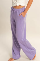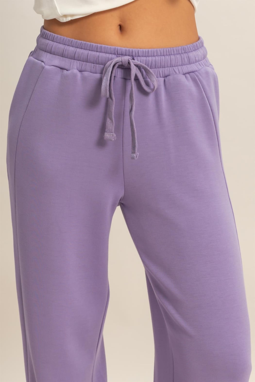 These pants are crafted from a smooth double knit, providing structure with soft stretch. The design features a comfortable elasticated waistband with a functional drawstring, a modern wide-leg silhouette cut, and discreet side-seam pockets. Pair with a cozy cropped sweatshirt or a simple tee for a relaxed, casual look. Model Is 5' 7" Tall, 32" Chest, 25" Waist, 36" Hips And Wearing A Size Small